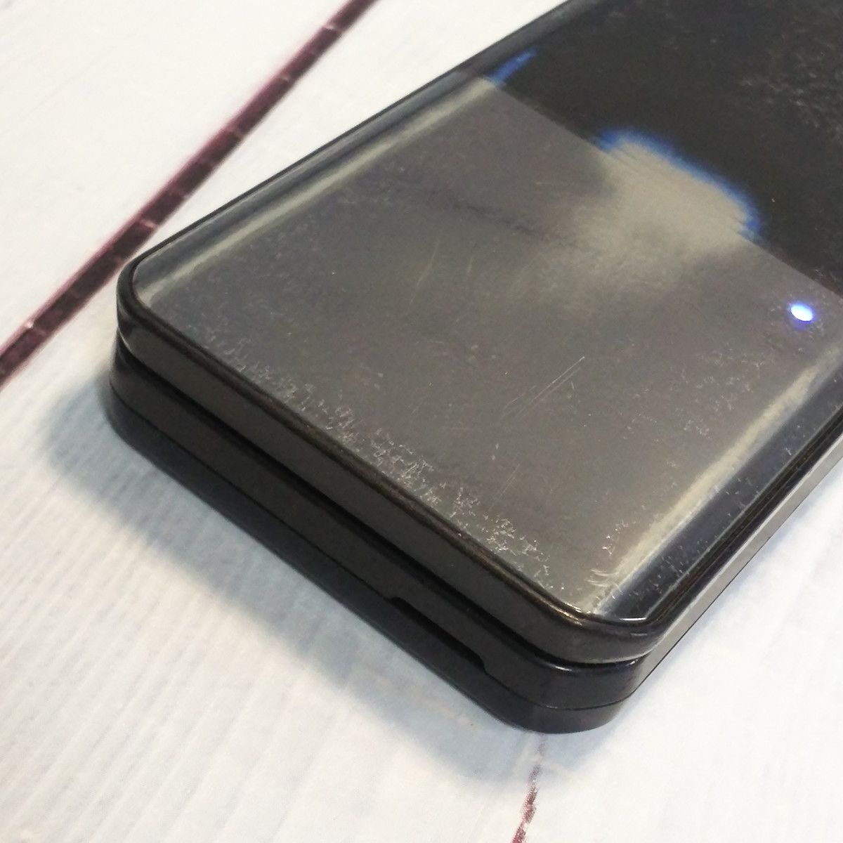 【液晶の状態】擦り傷と色むら、右側に液晶不良がみられますが、液晶ON時にあまりにも目立つ傷や汚れはありません。