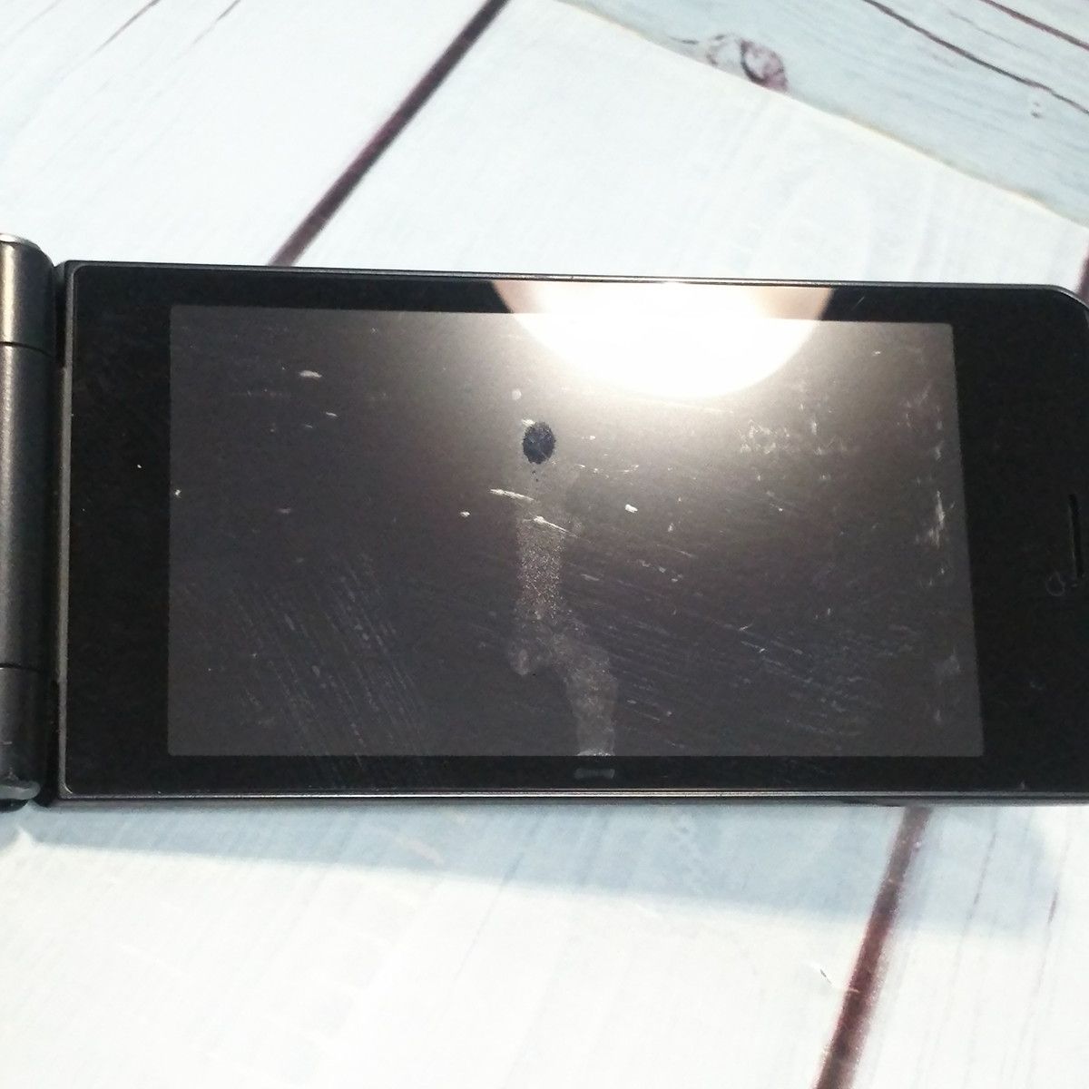 【液晶の状態】擦り傷とボタン痕、液晶不良がみられますが、液晶ON時にあまりにも目立つ傷や汚れはありません。