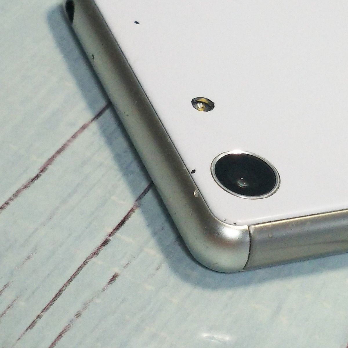 【液晶の状態】下部に割れがみられます。また、擦り傷と色むらがみられますが、タッチ操作に影響はありません。