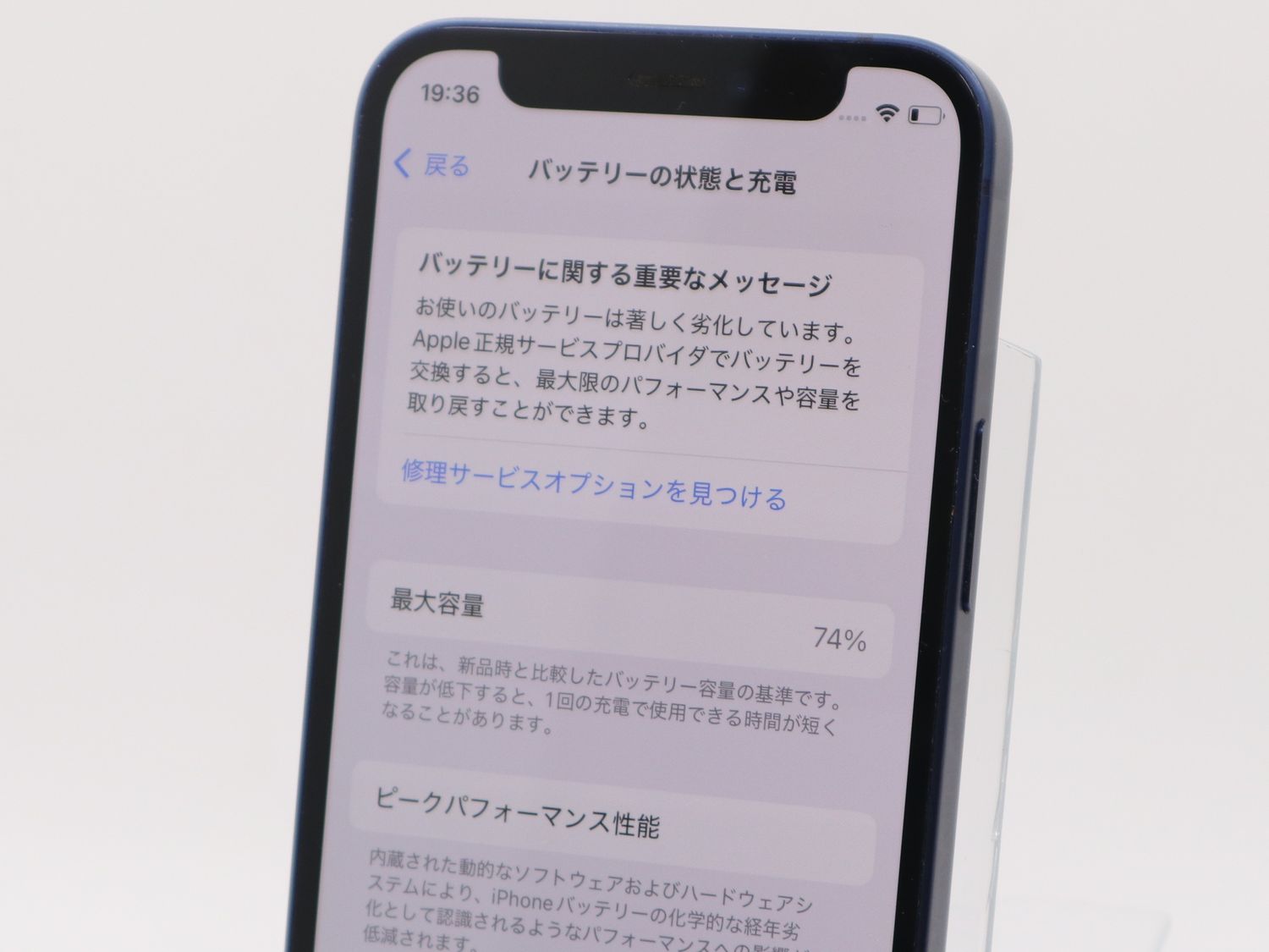 ■バッテリー状態 : 最大容量100%中74%