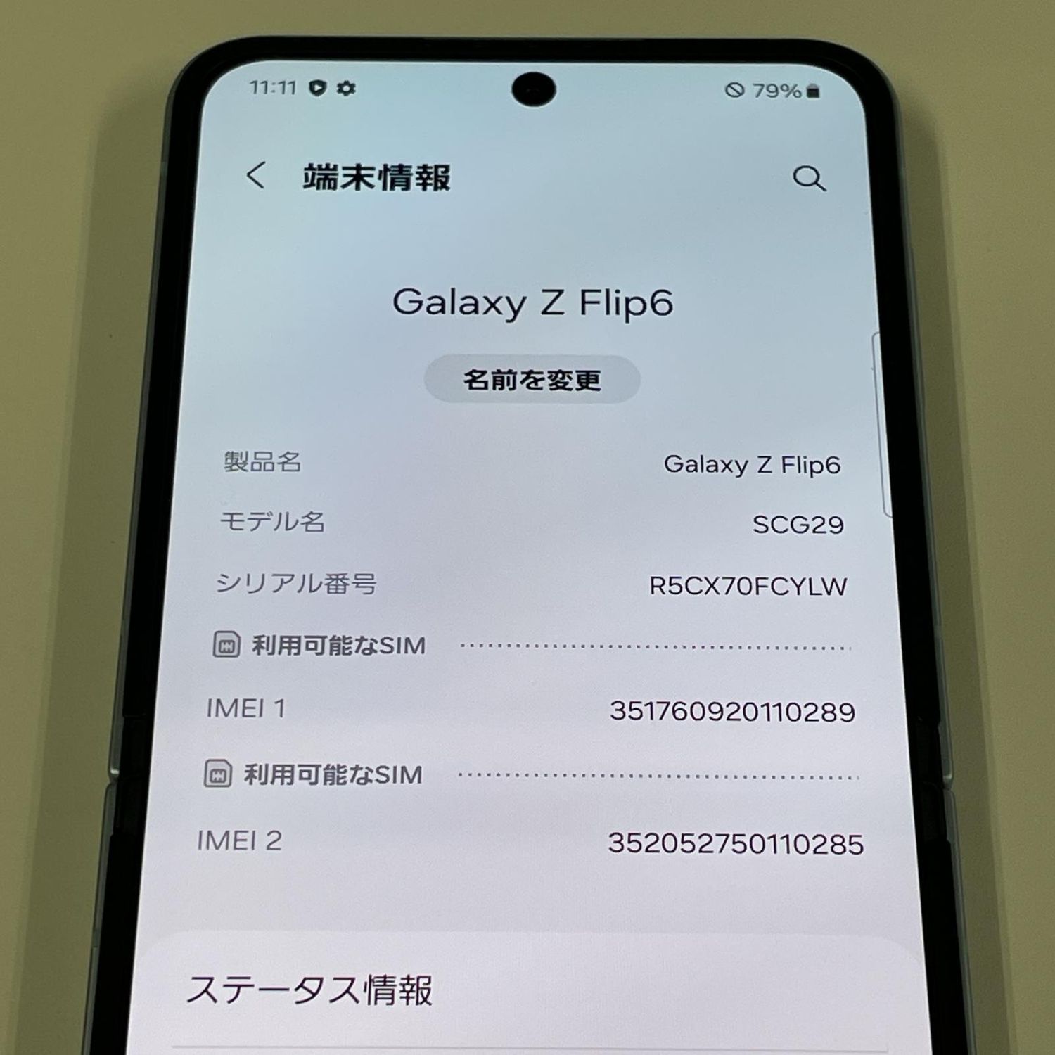 | 機種名 | Galaxy Z Flip6 |