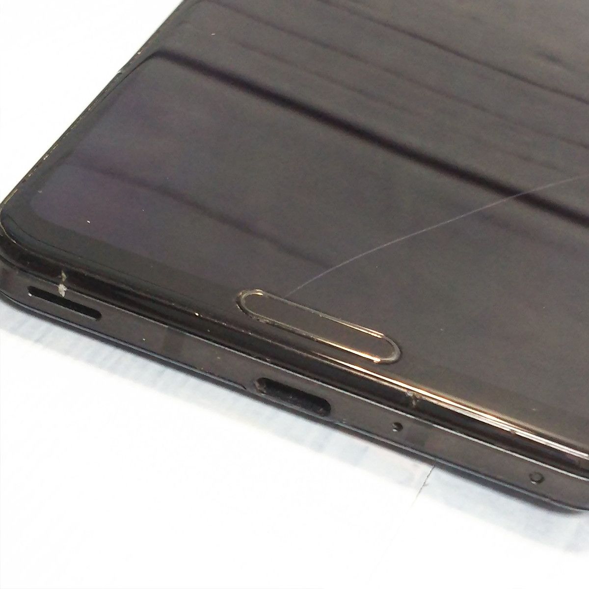 【液晶の状態】液晶割れと擦り傷、光漏れがみられますが、検品時点でタッチ操作に影響はありません。