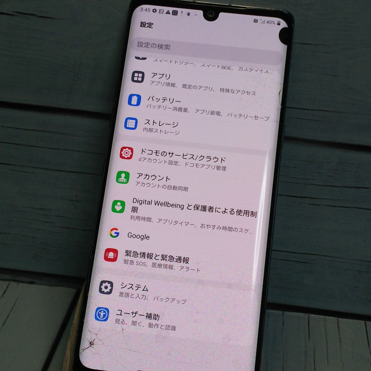 【液晶の状態】割れと表示不良がみられますが、検品時点でタッチ操作に影響はありません。