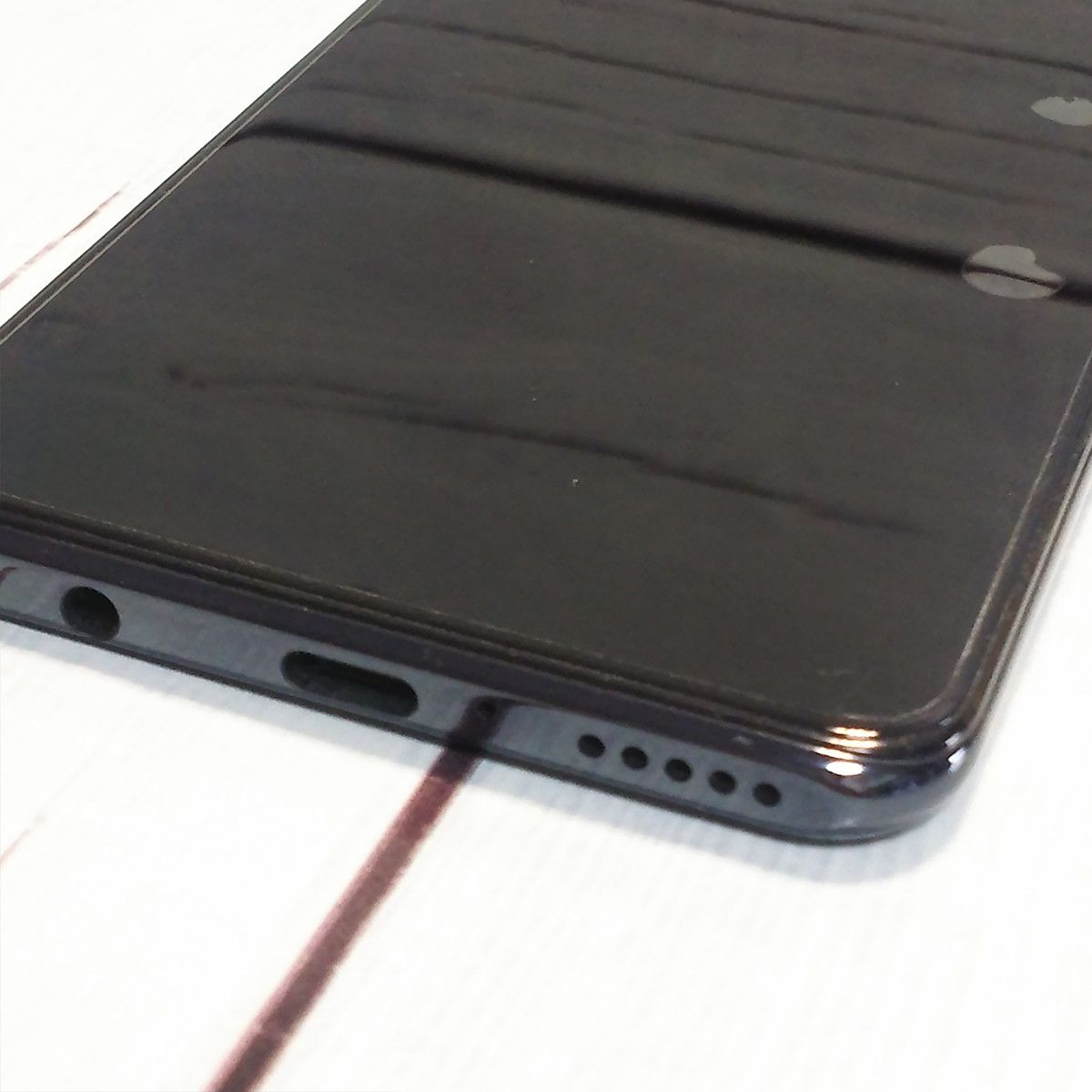 【液晶の状態】色むらがみられますが、保護シートが貼られてあったため傷や汚れが少なくきれいです(検品のためシートは1度剥がしてから貼りなおしています、またシート自体には擦り傷がみられます)。
