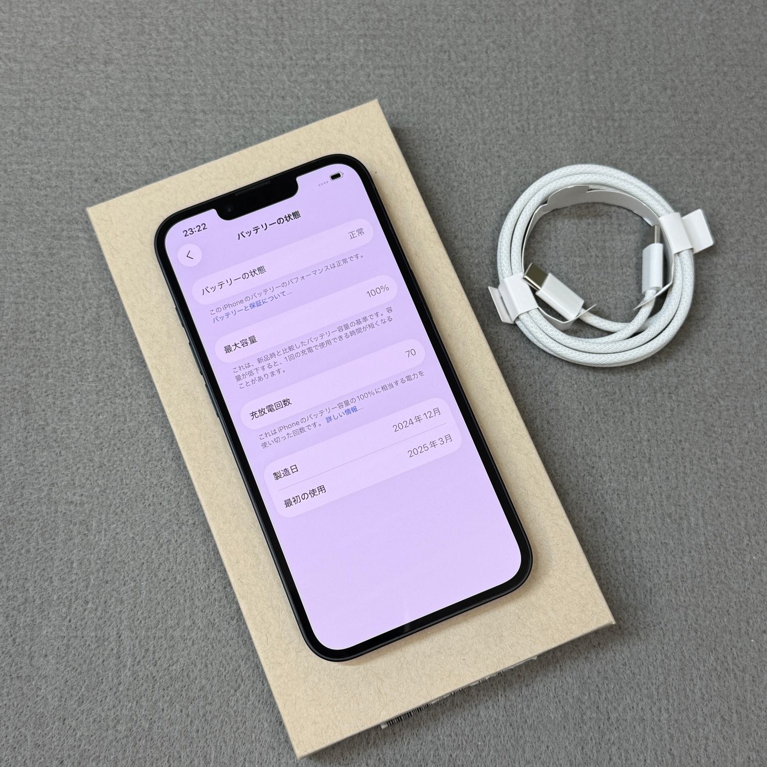 *充電回数: 70回 バッテリー: 100%