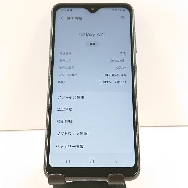 | 機種名 | Galaxy A21 シンプル SCV49 |