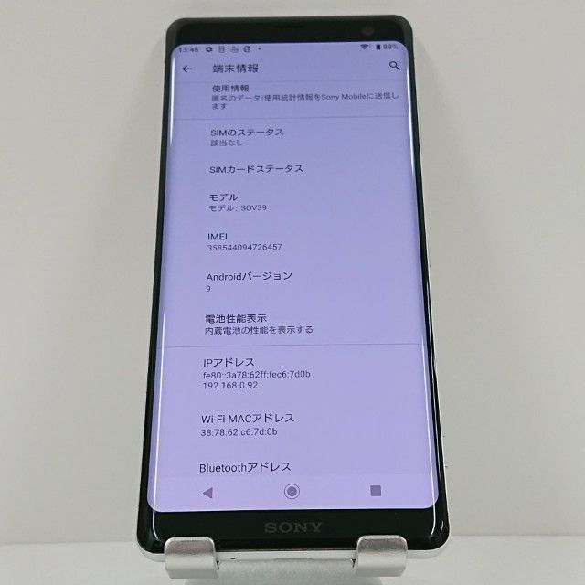 | 機種名 | Xperia XZ3 SOV39 |