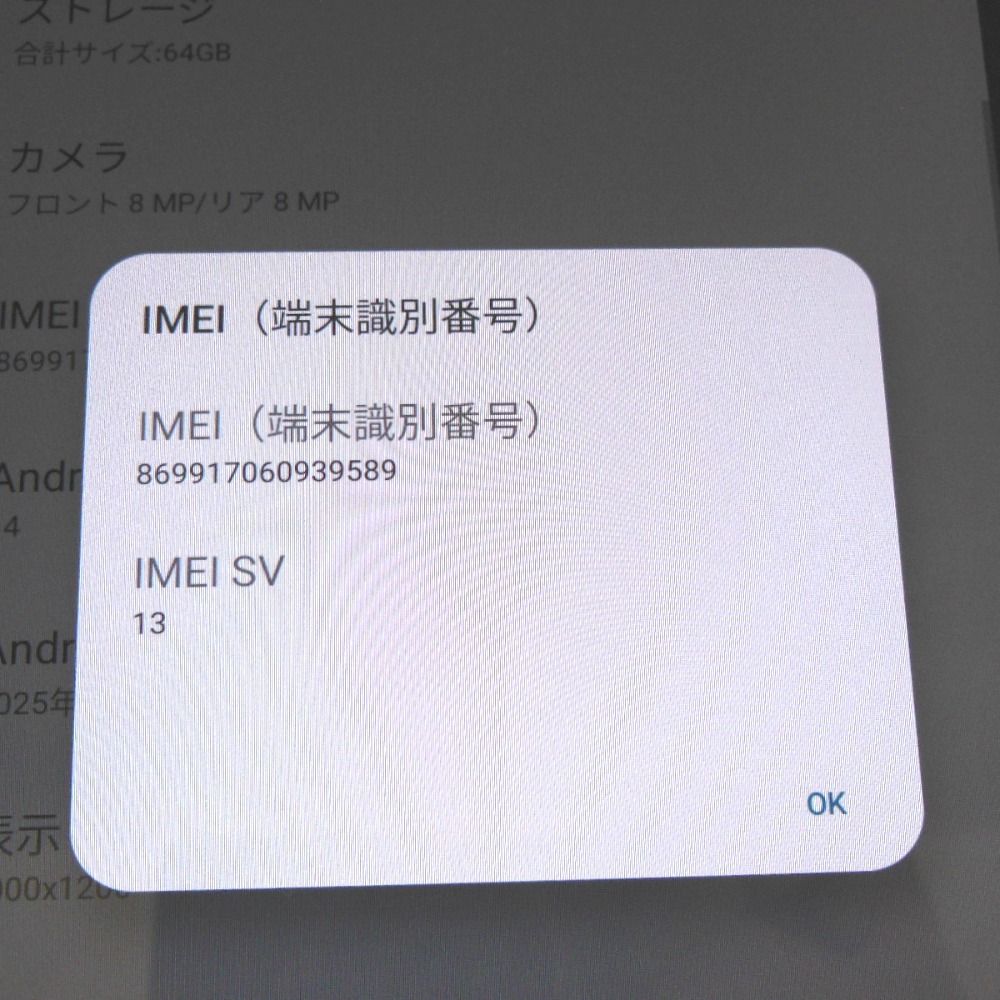 | IMEI番号 | 869917060939589 |