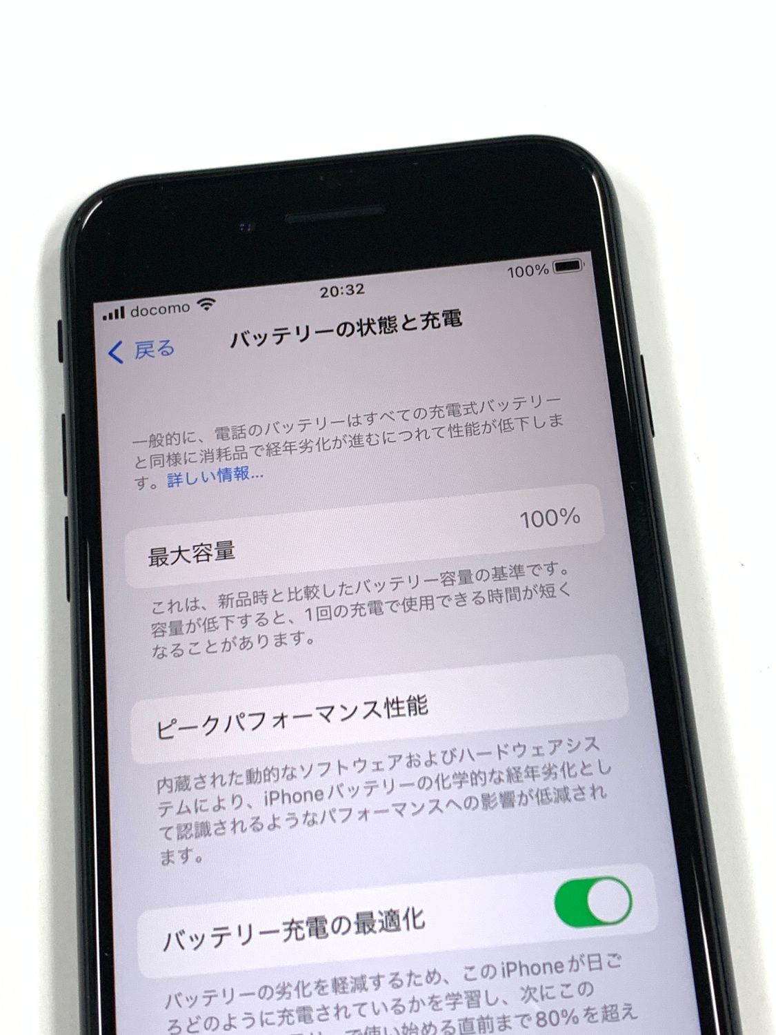 バッテリー最大容量表示:100%