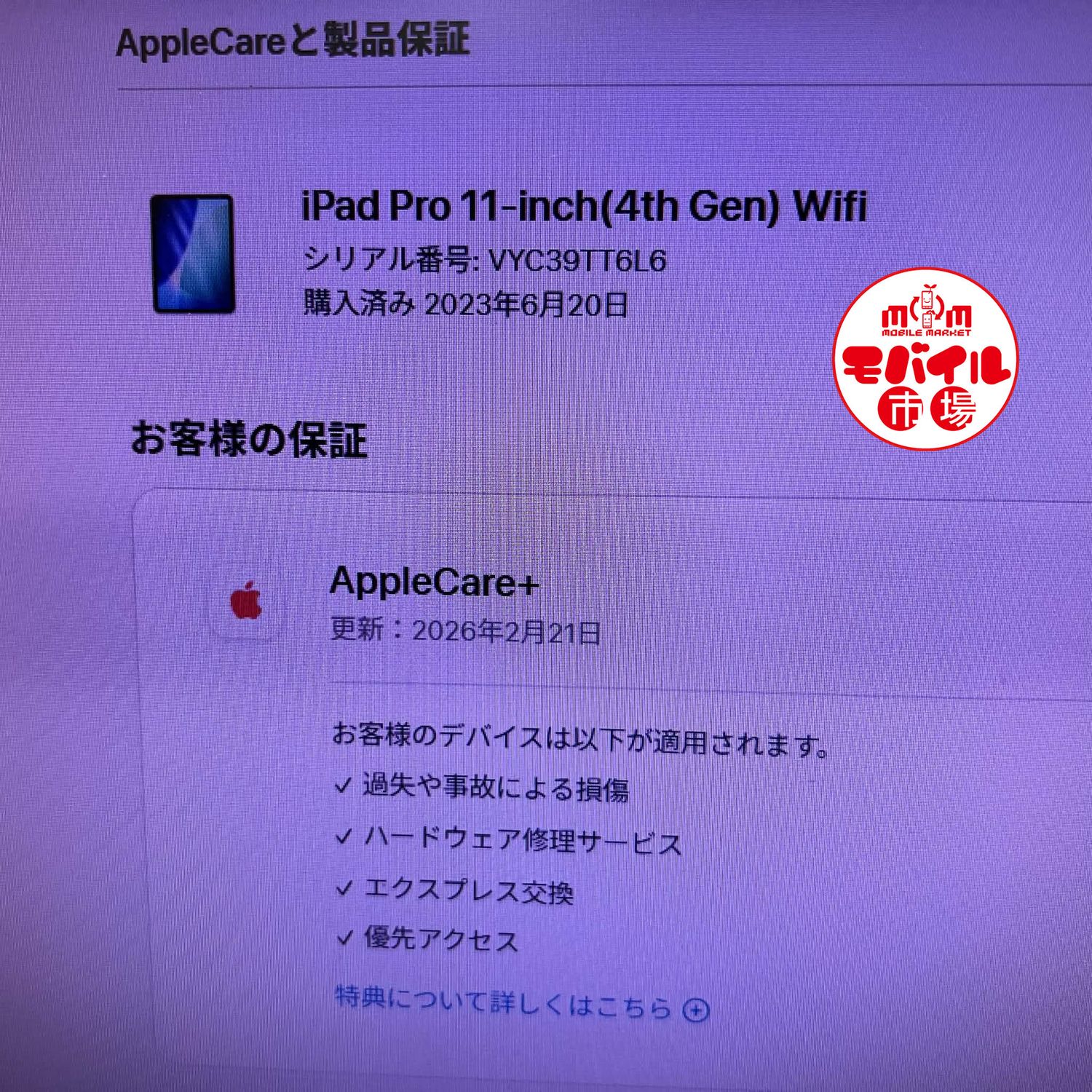 モバイル市場☆iPad Pro 11インチ 第4世代 128GB★Appleケア+保証☆送料無料