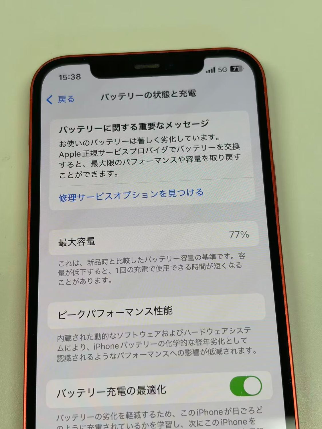 バッテリー最大容量表示:77%
