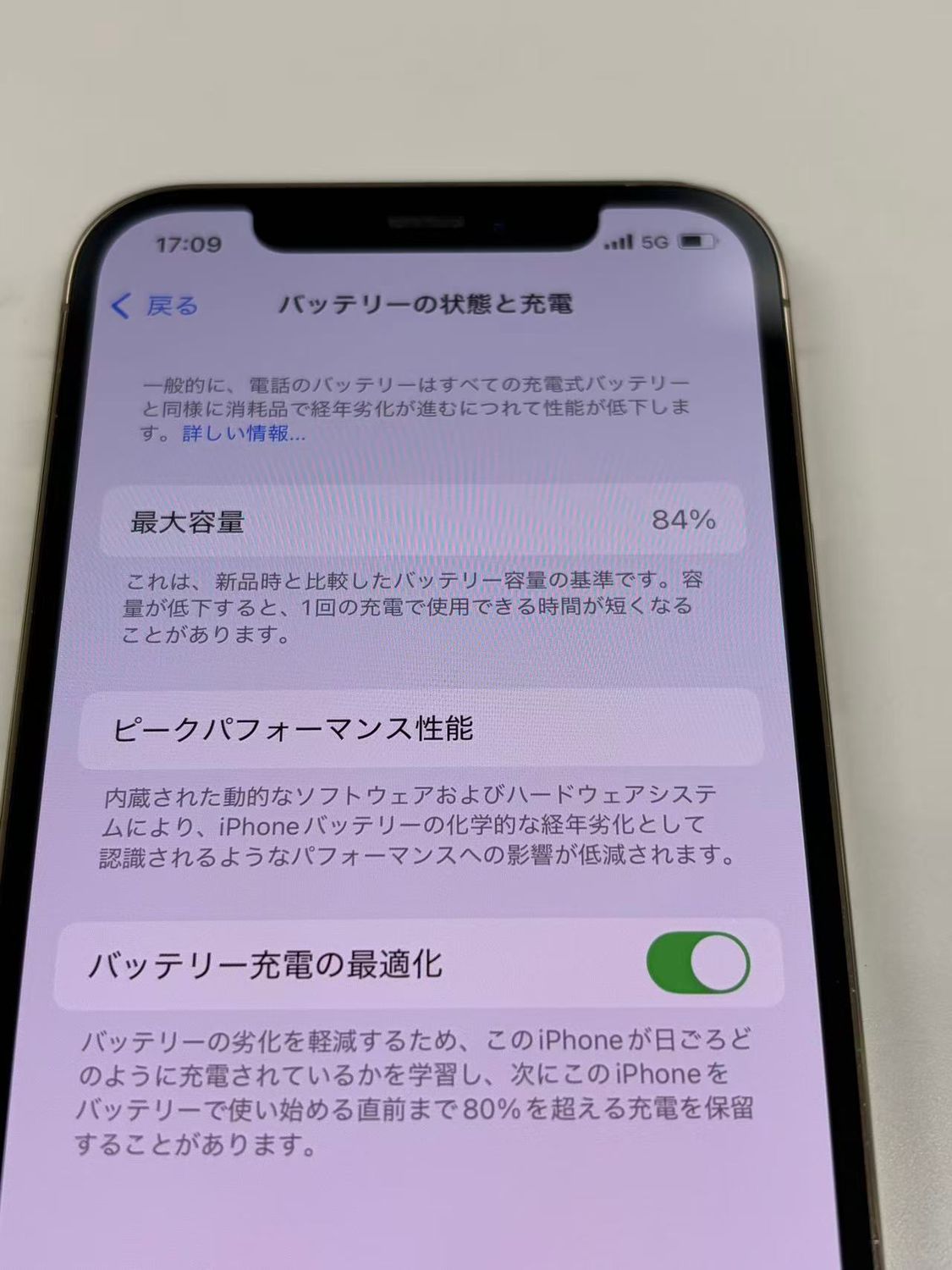 バッテリー最大容量表示:84%