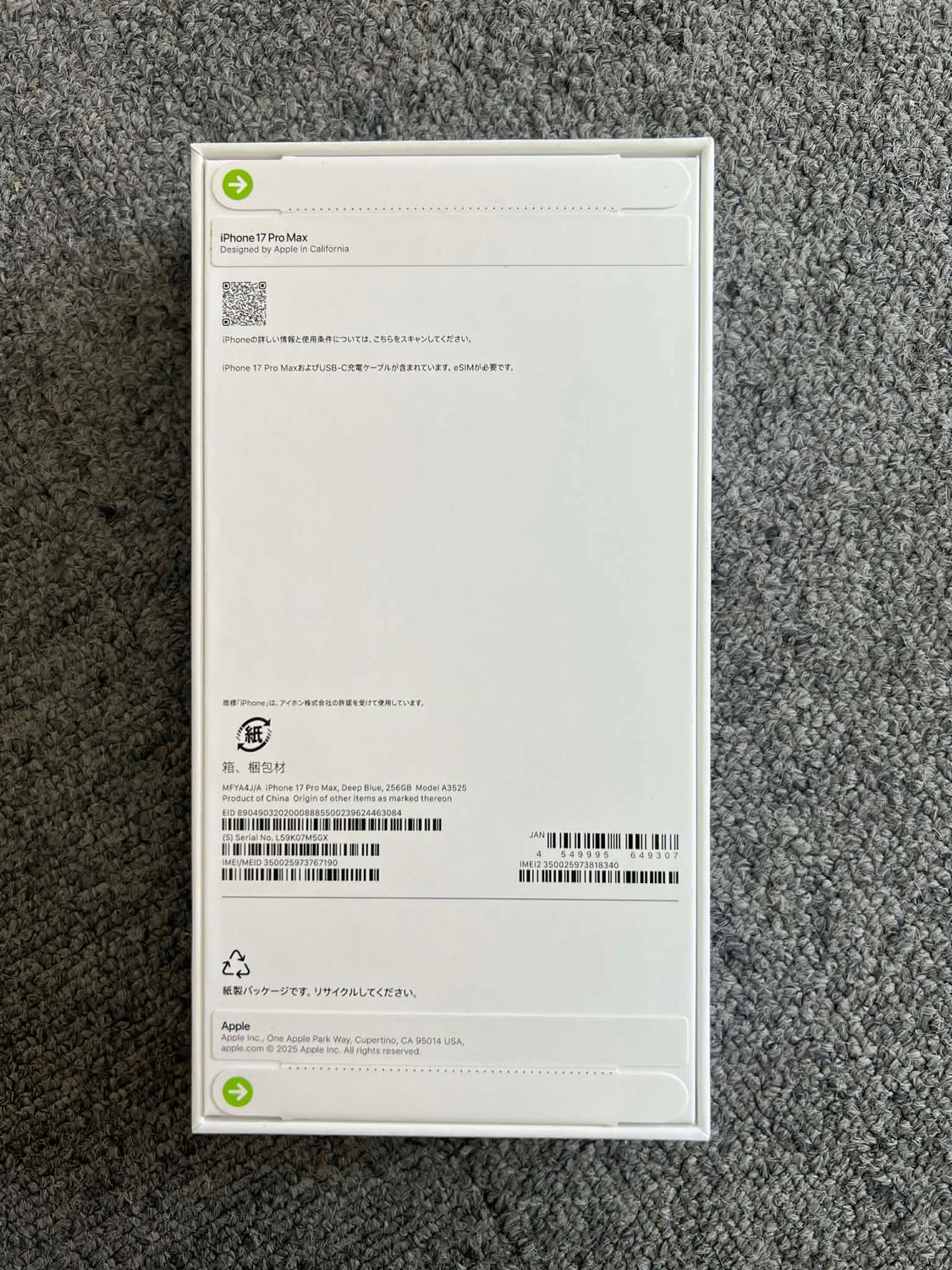 明日発送 新品・未開封 iPhone17 ProMax 256GB ディープブルー 国内SIMフリー