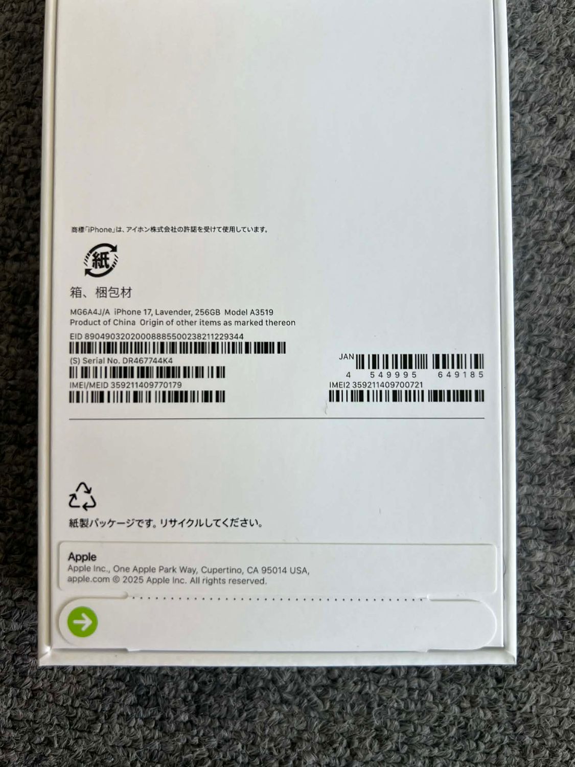 明日発送 新品・未開封 iPhone17 256GB ラベンダー 国内SIMフリー