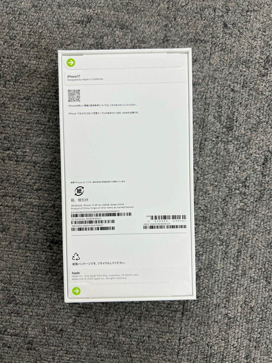 明日発送 新品・未開封 iPhone17 256GB ホワイト 国内SIMフリー