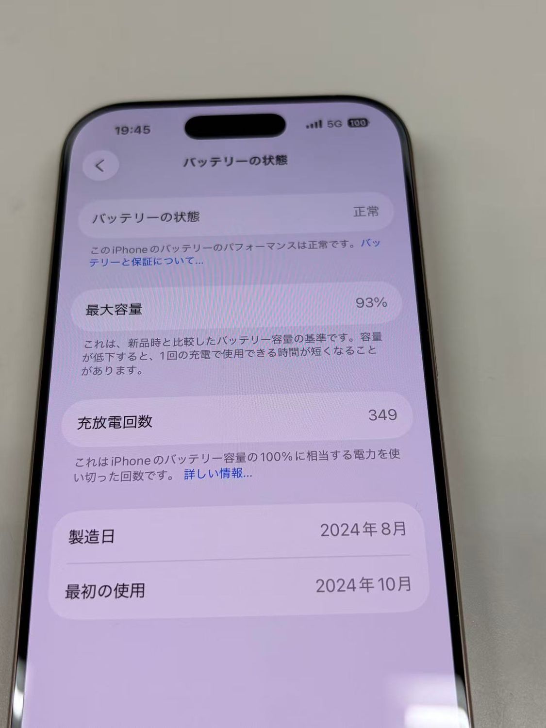 バッテリー最大容量表示:93%