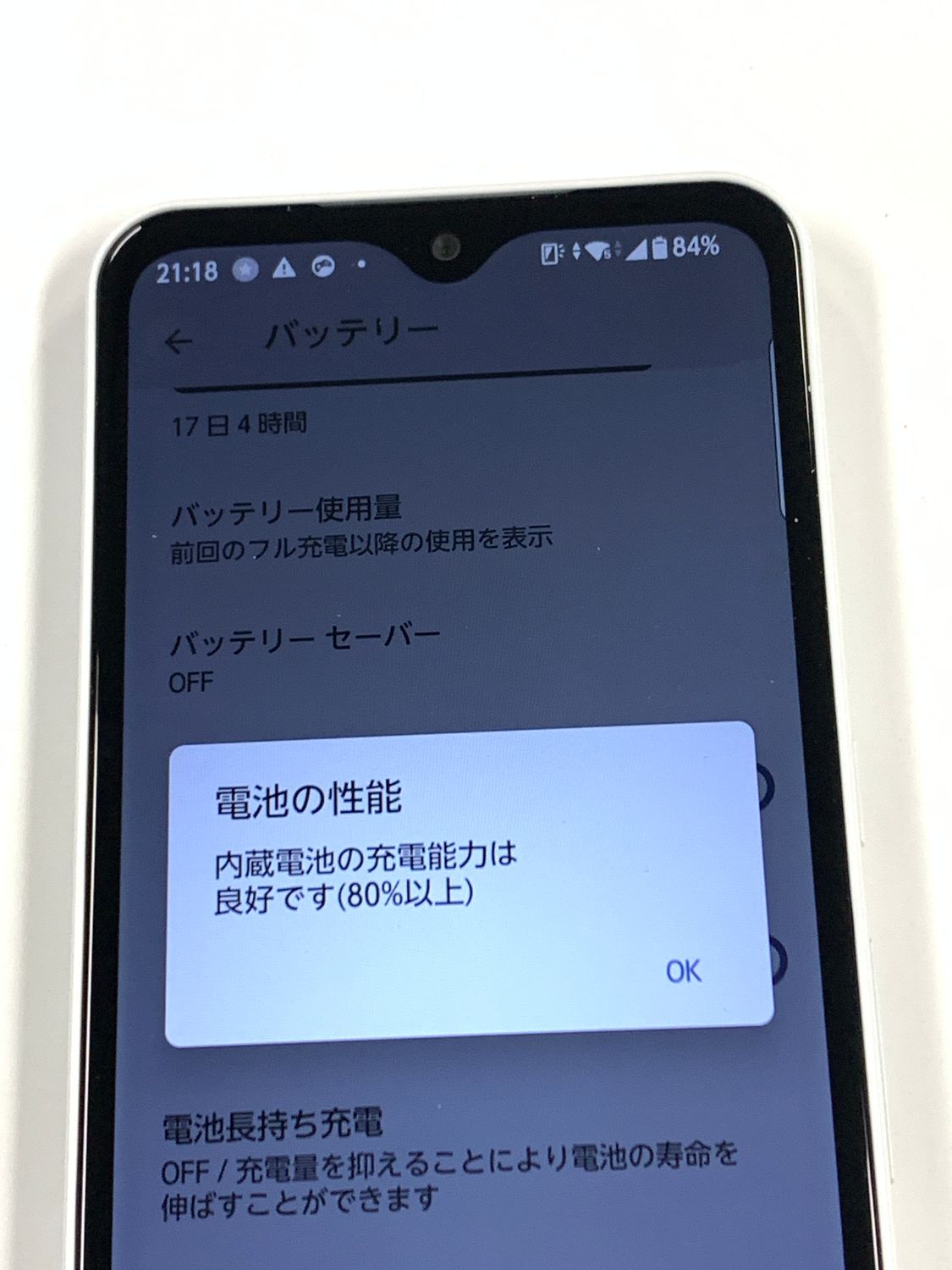 電池性能表示:内蔵電池の充電能力は良好です。(80%以上)