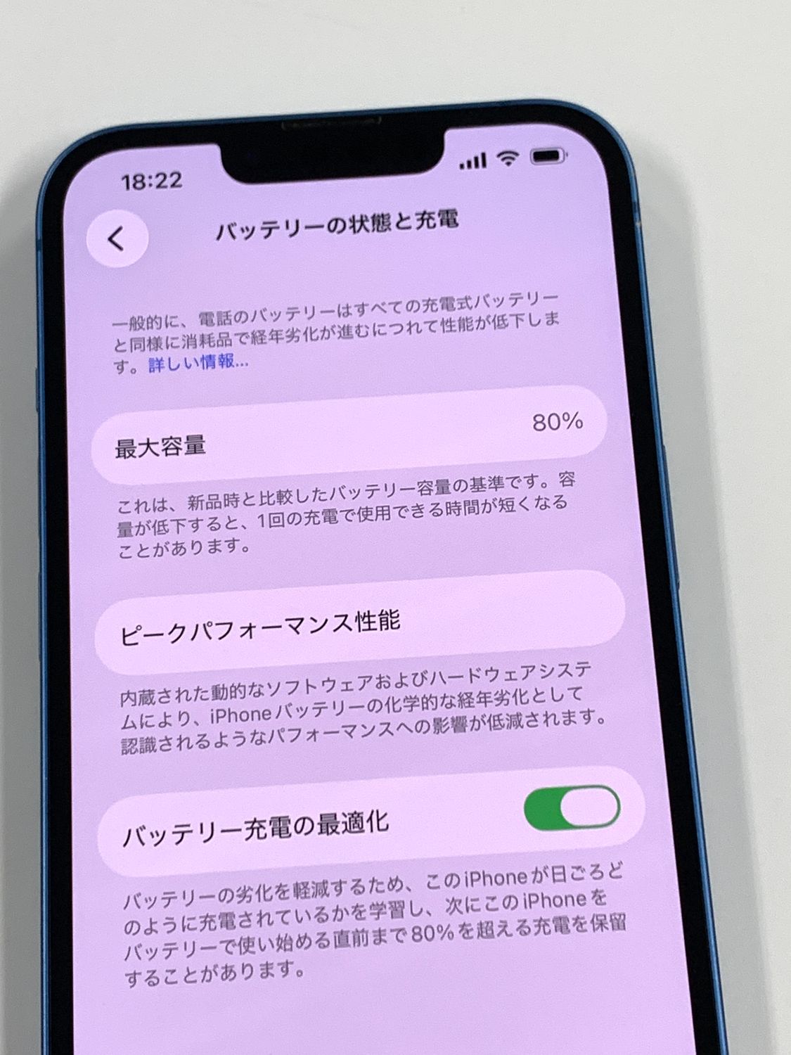 バッテリー最大容量表示:80%