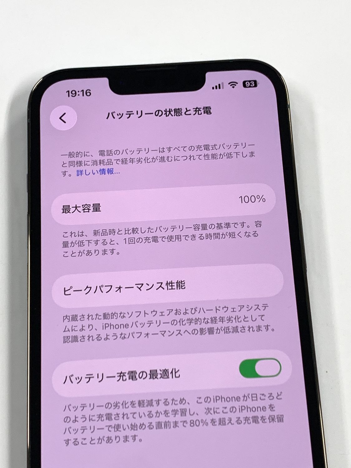 バッテリー最大容量表示:100%