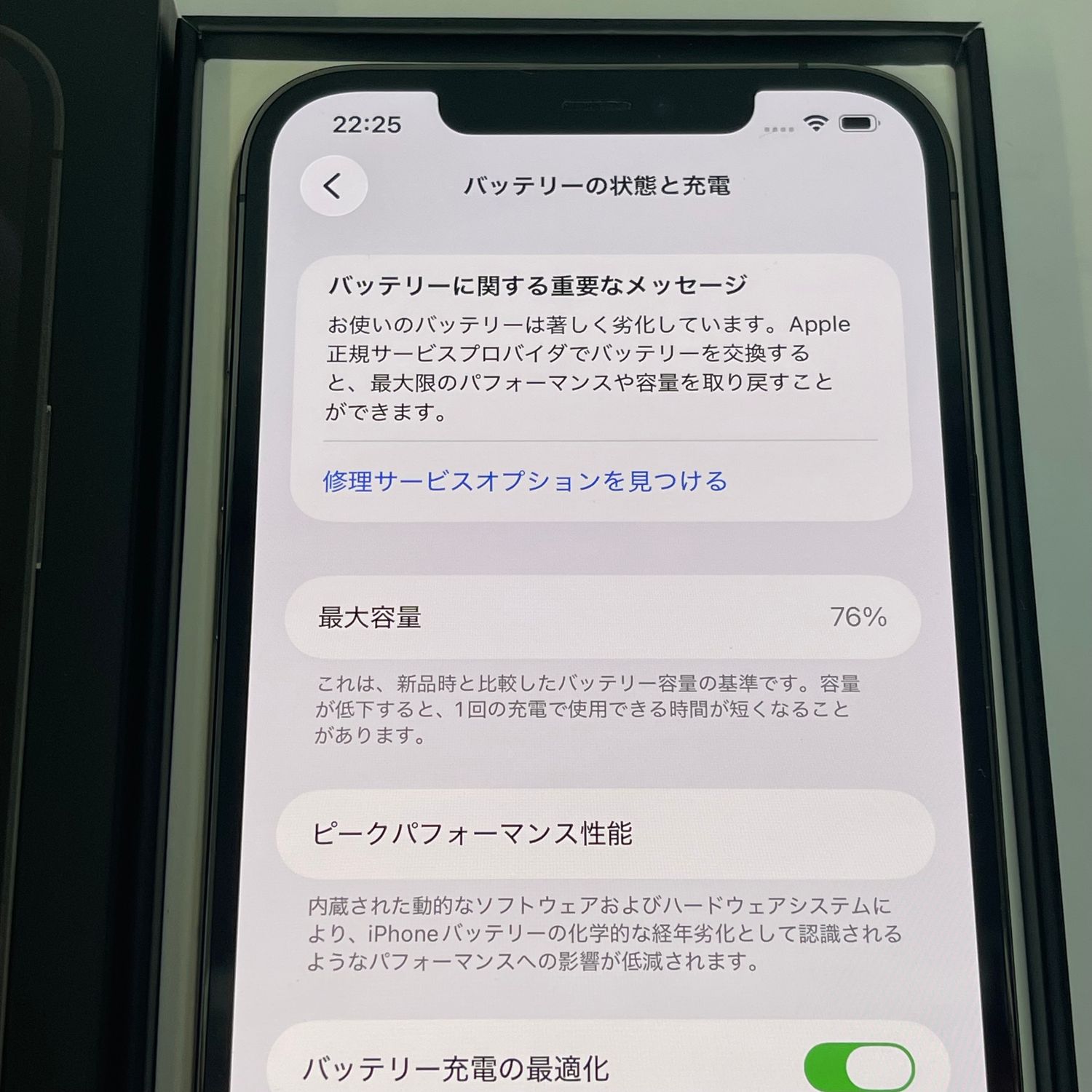 検品時のバッテリーの最大容量は76%、mydocomoにてSIMロック解除済みです。