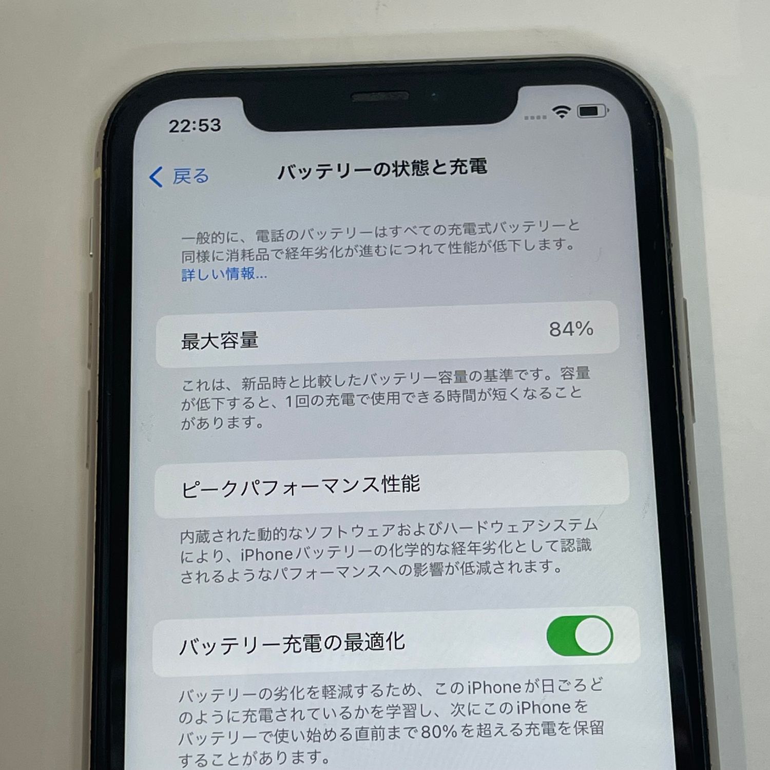 検品時のバッテリーの最大容量は84%、myauにてSIMロック解除済みです。