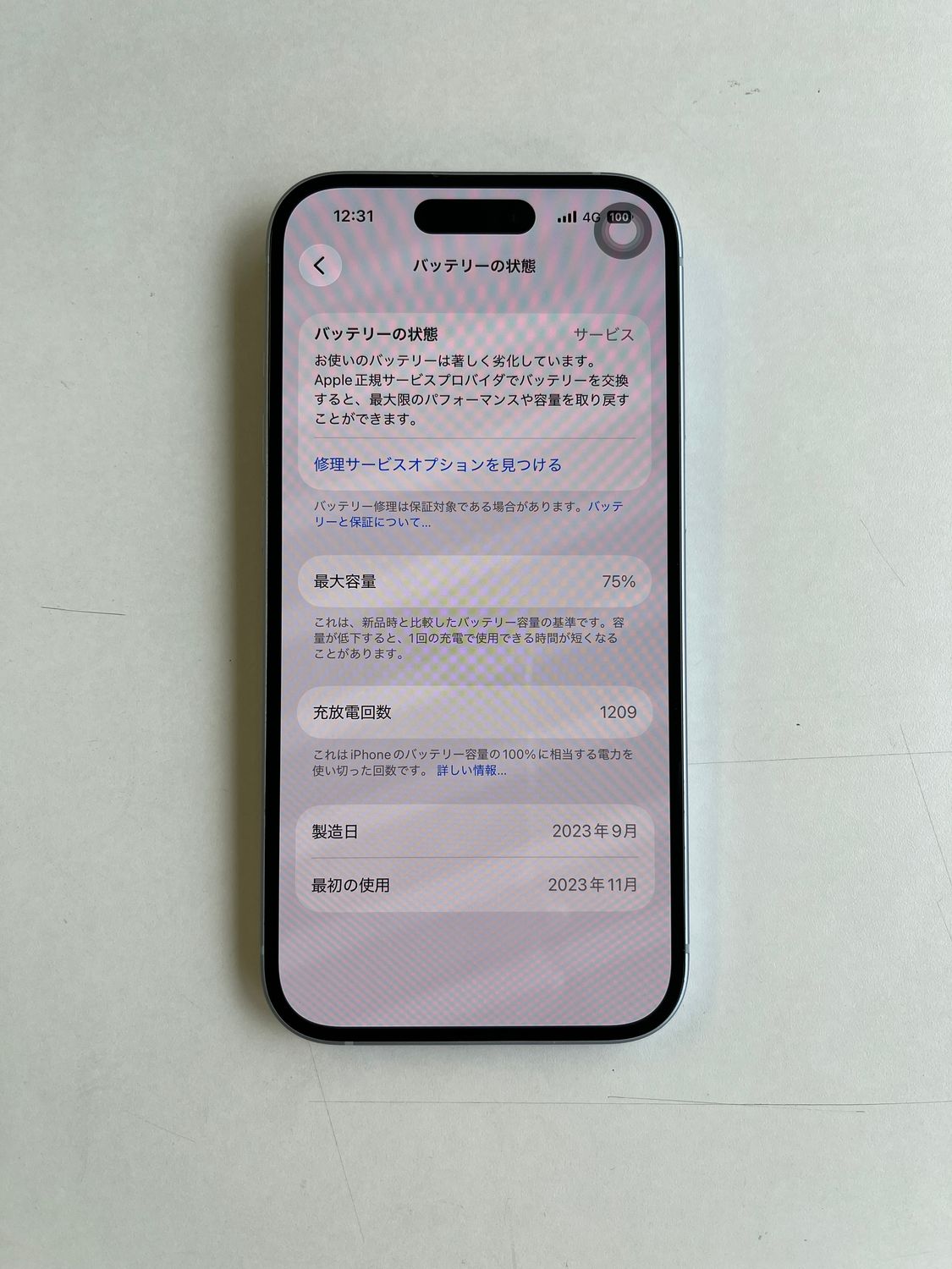 バッテリー最大容量: 75%