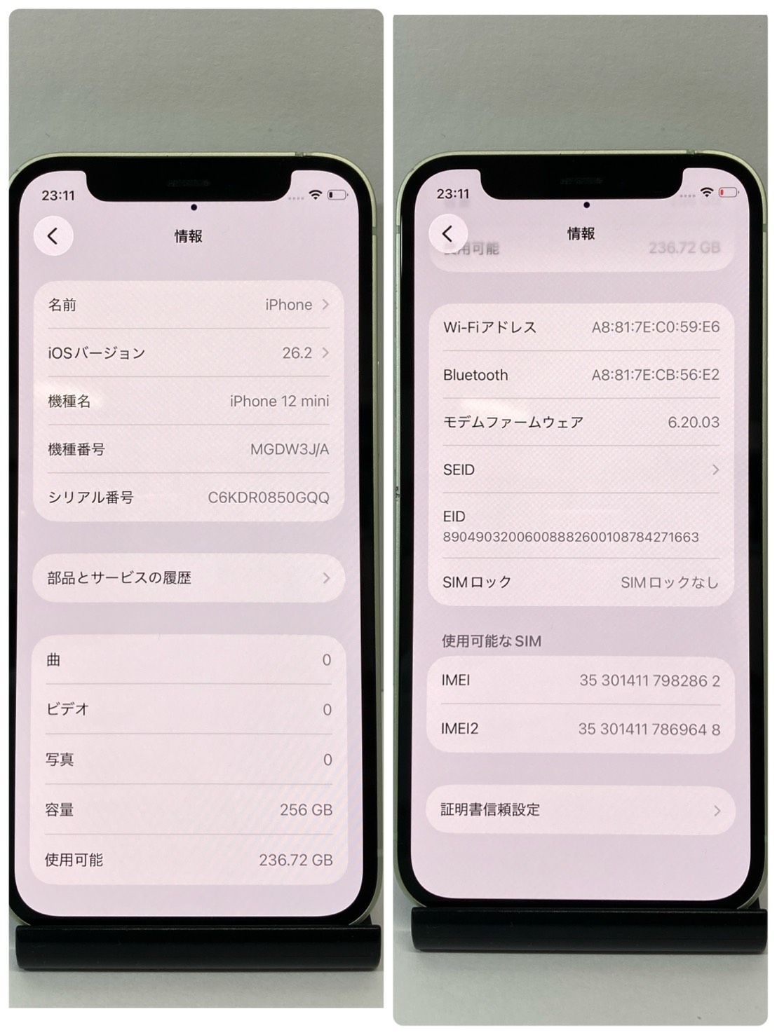 明日発送 ジャンク完動品・画面背面美品☆iPhone 12mini 256GB SIMフリー◆スピード発送