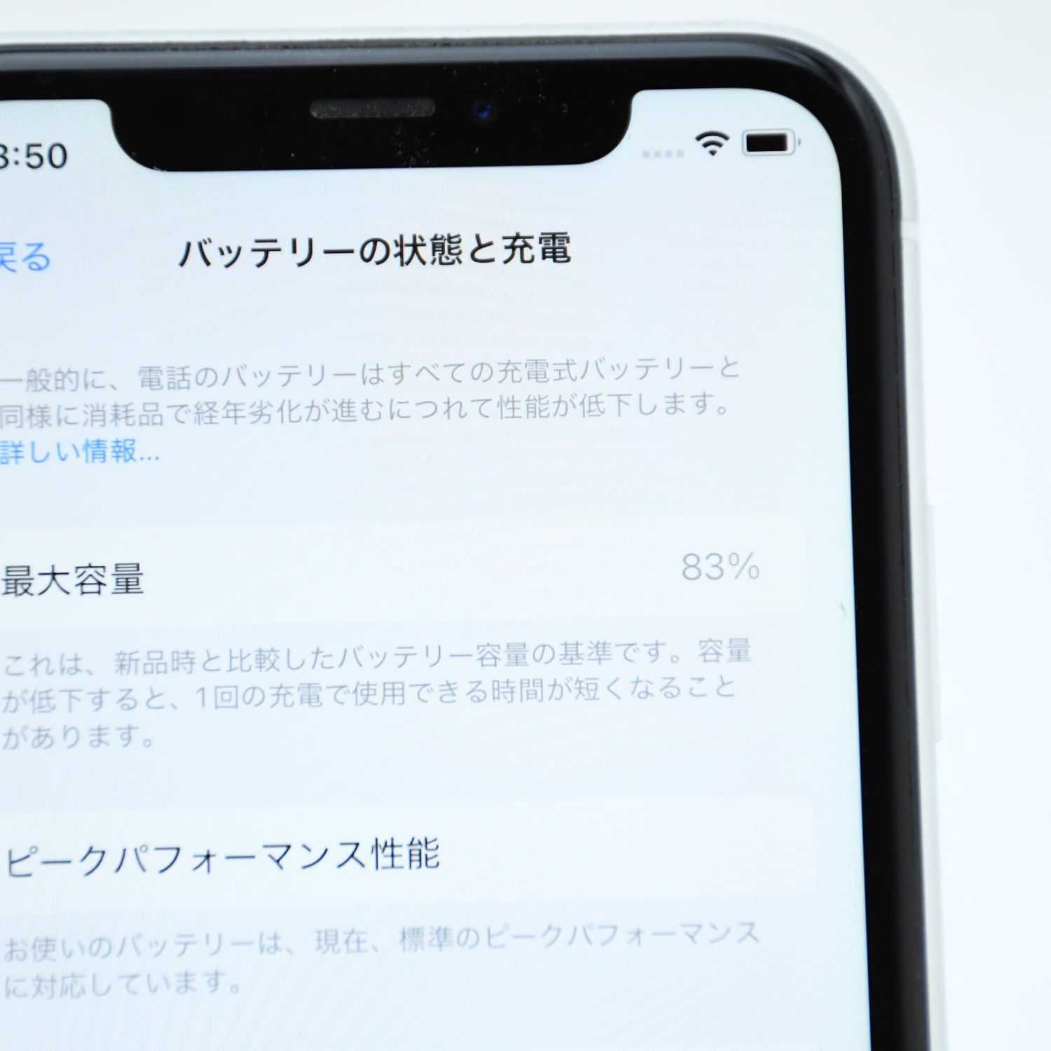 バッテリー最大容量 :100%中83%