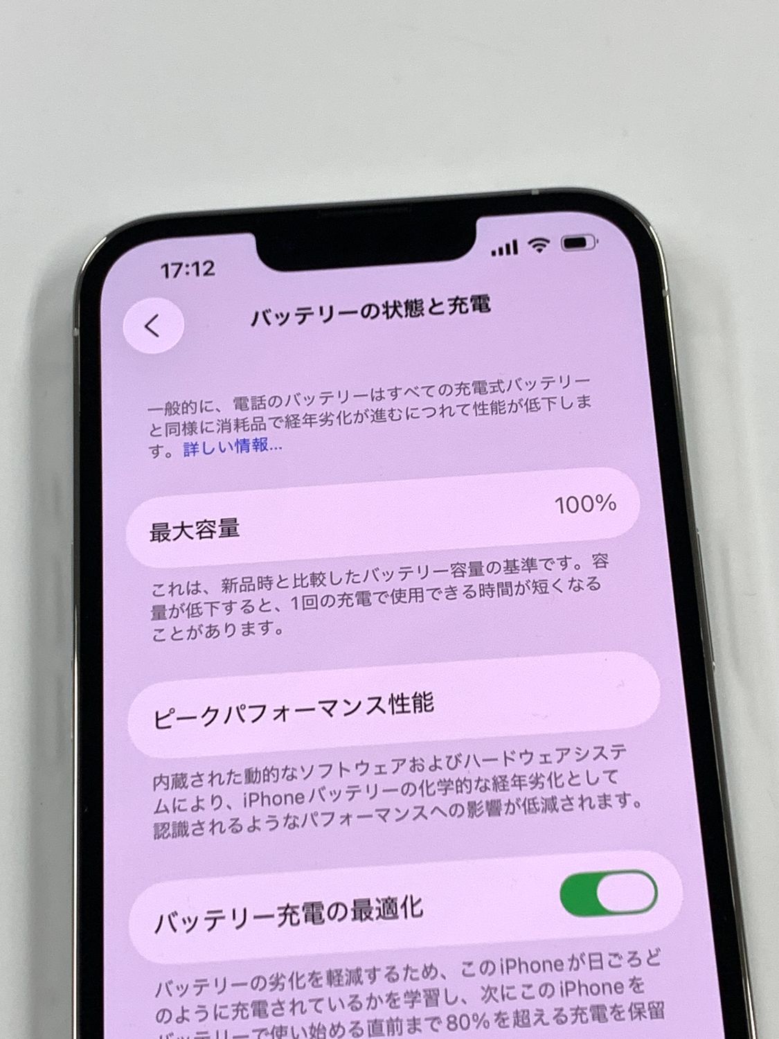 バッテリー最大容量表示:100%