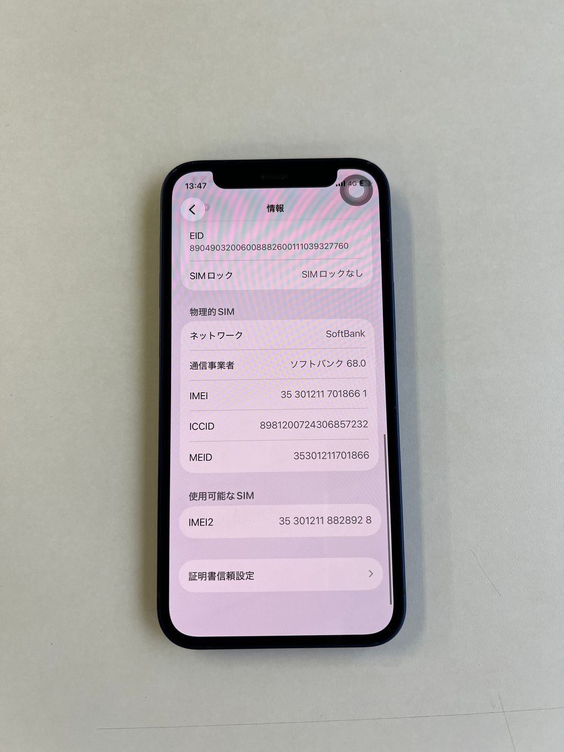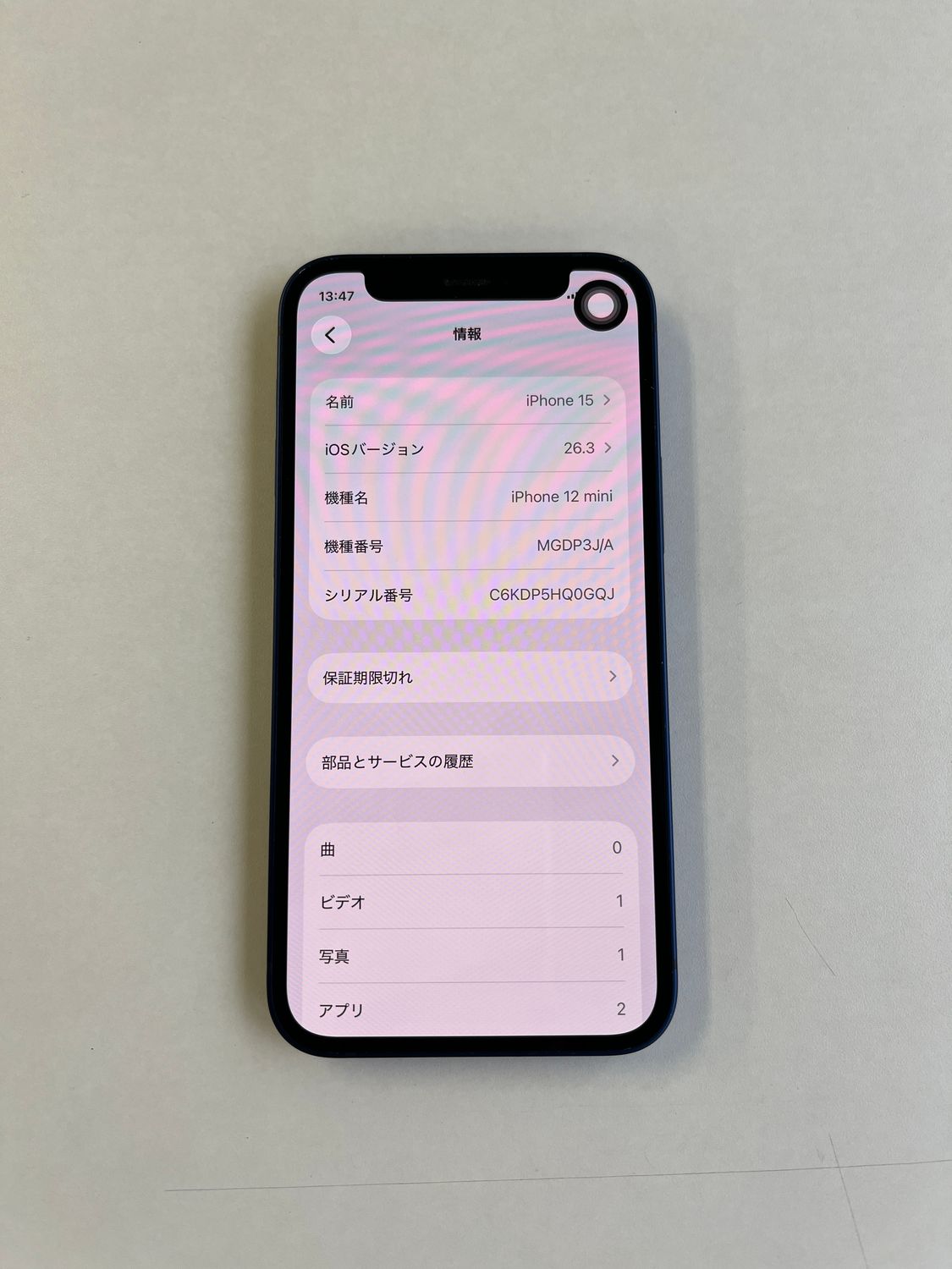 | 機種名 | iPhone12 mini |