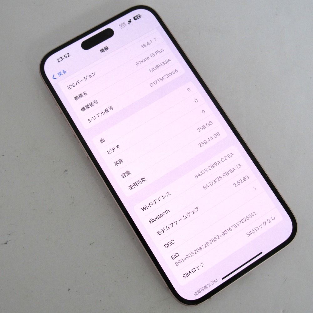 【質みなみ】■SIMフリー■iphone15 Plus MU0H3J/A 256GB ピンク■中古