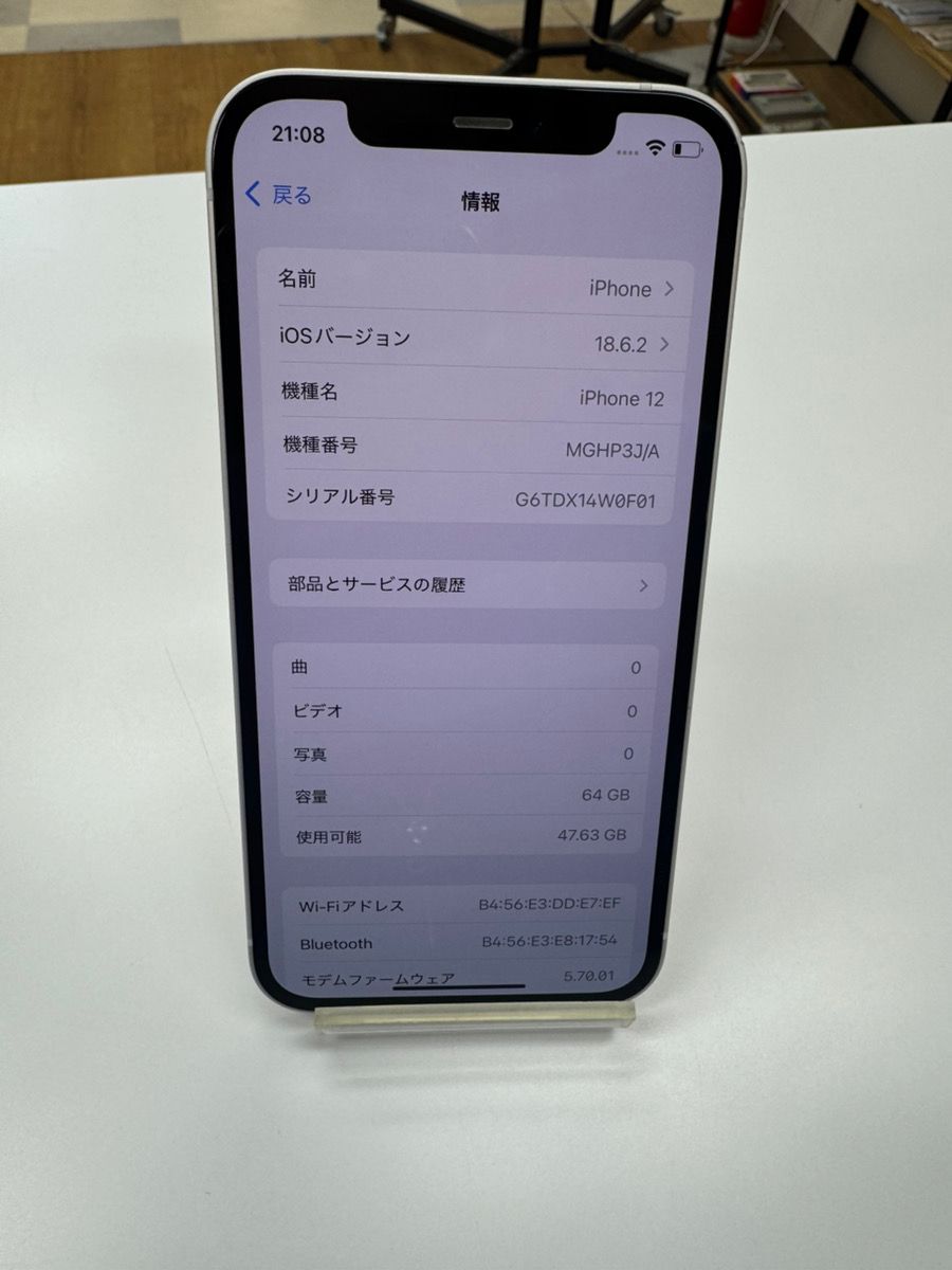 【修理店整備済】iPhone12 64GB ホワイト SIMロック解除済み