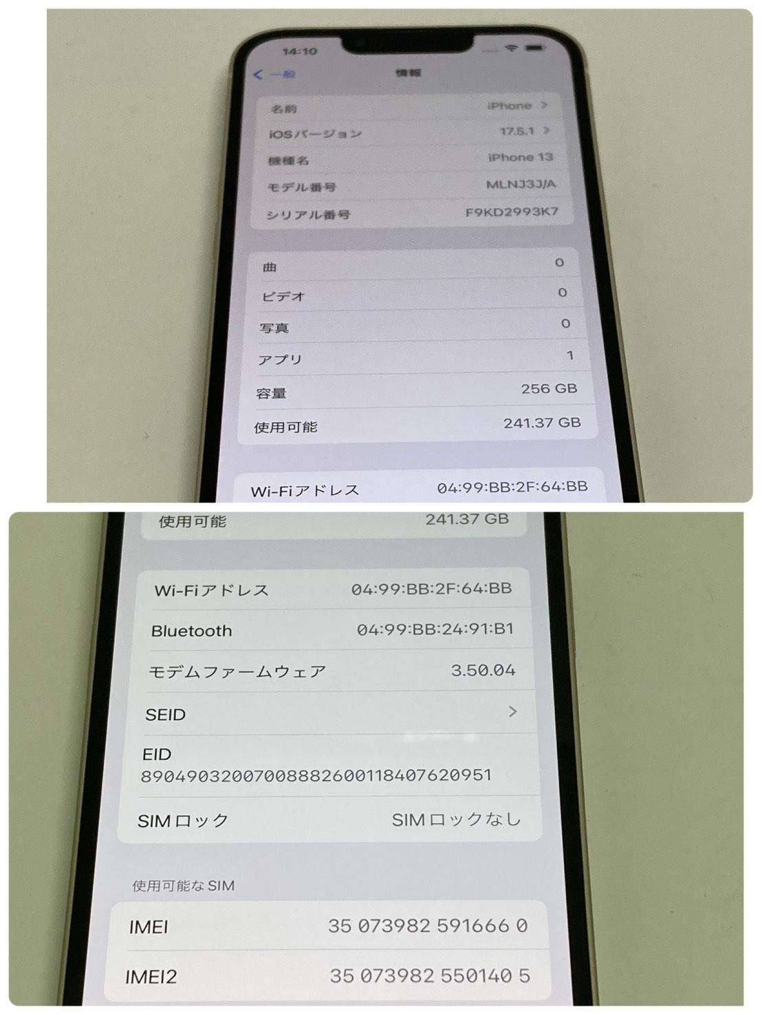 | IMEI番号 | 350739825916660 |