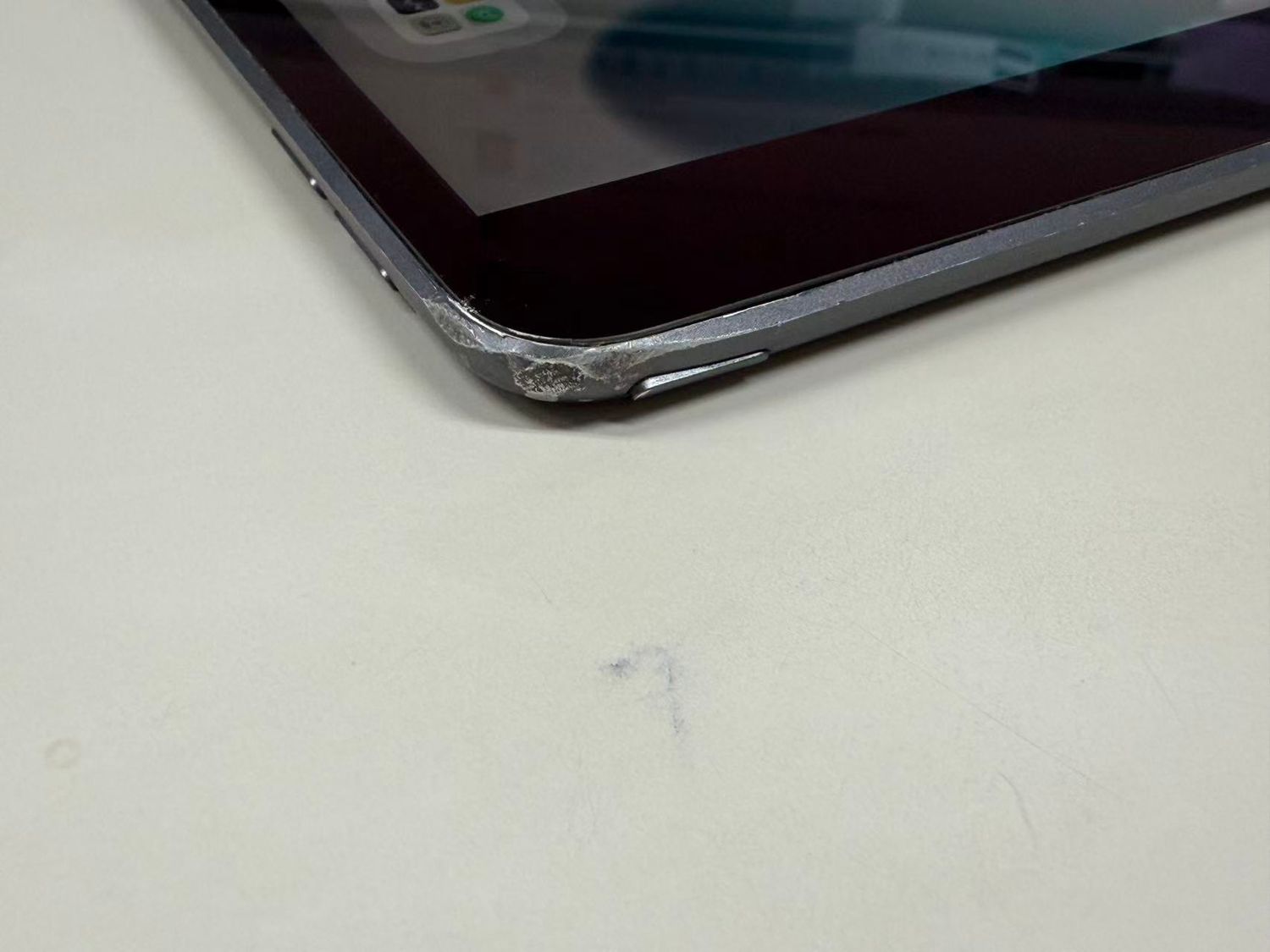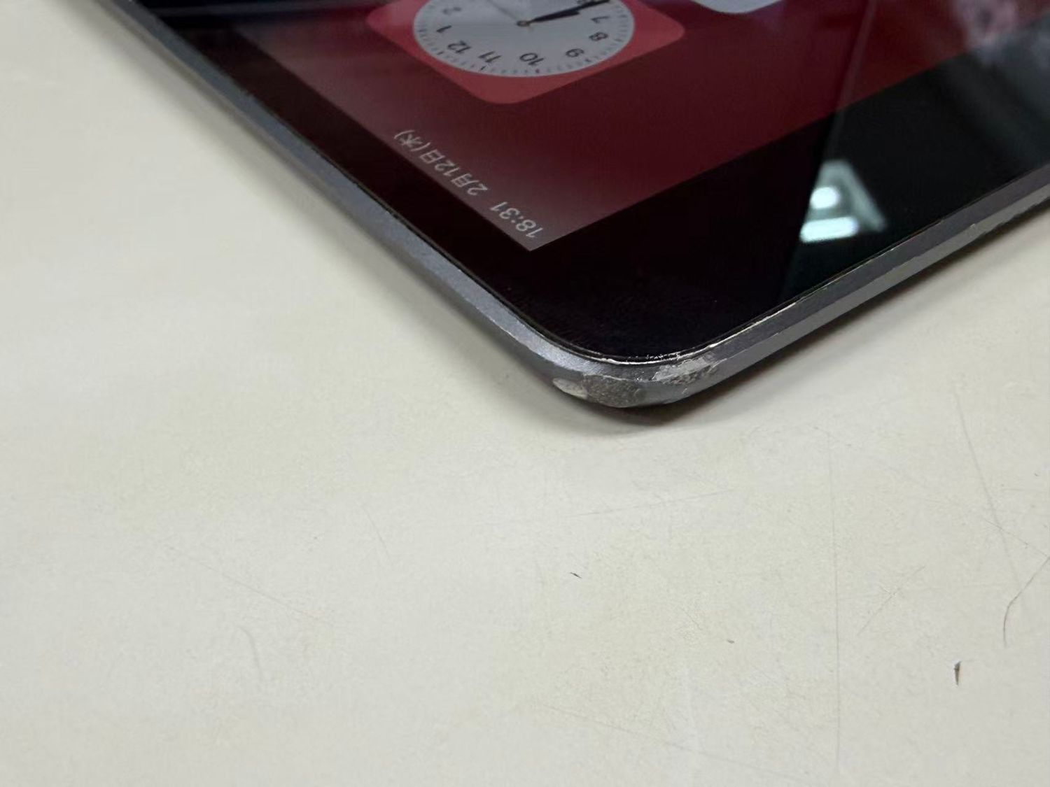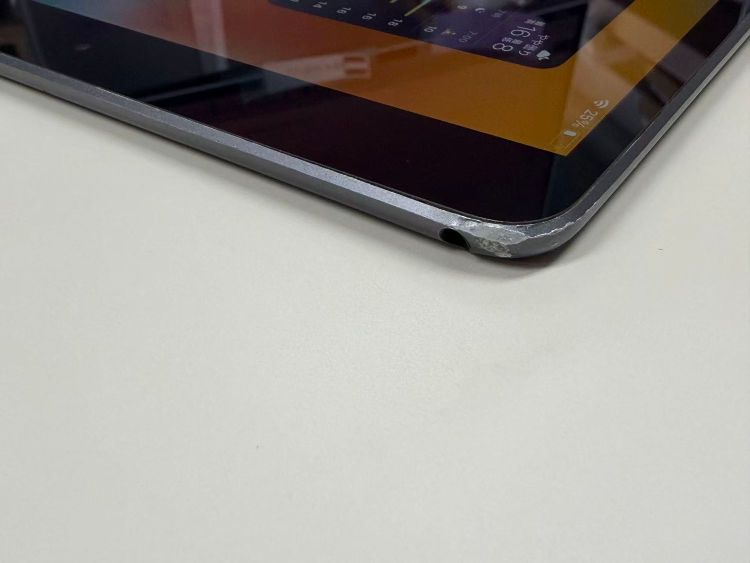 側面の右上打痕により、液晶パネルの右上が少々浮きがあります。
