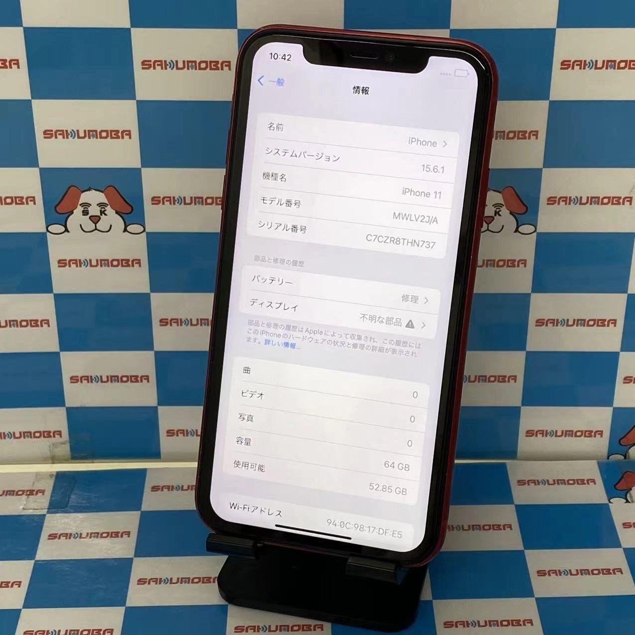 品名 iPhone11 64GB Product Red MWLV2J/A SoftBank版SIMフリージャンク品