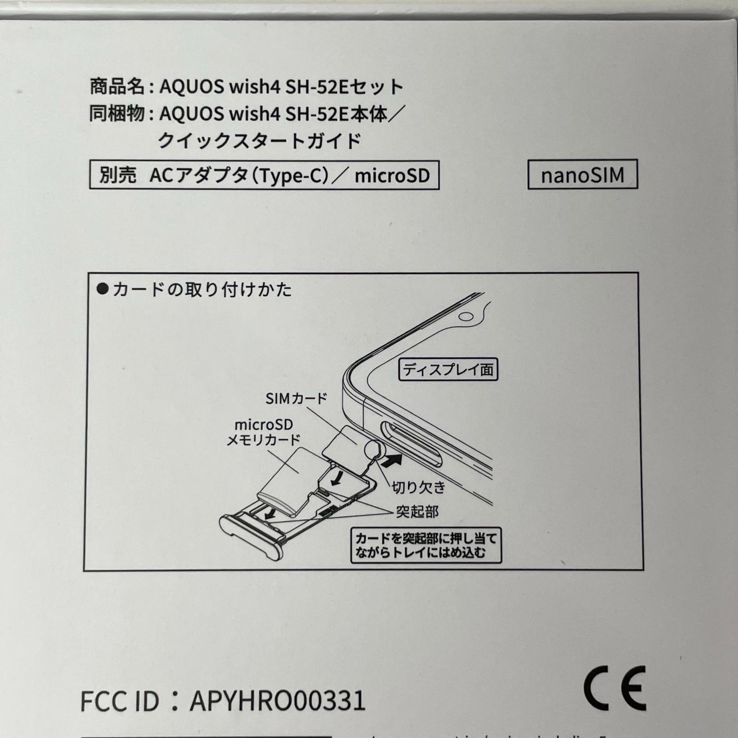 | 機種名 | AQUOS wish4 SH-52E |