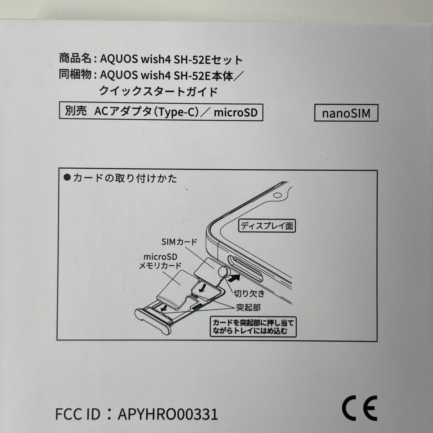 | 機種名 | AQUOS wish4 SH-52E |