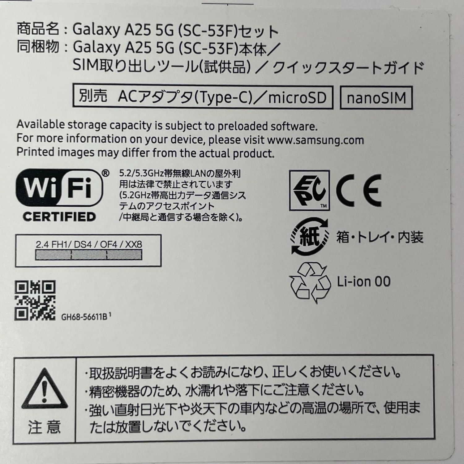 | 機種名 | Galaxy A25 5G SC-53F |