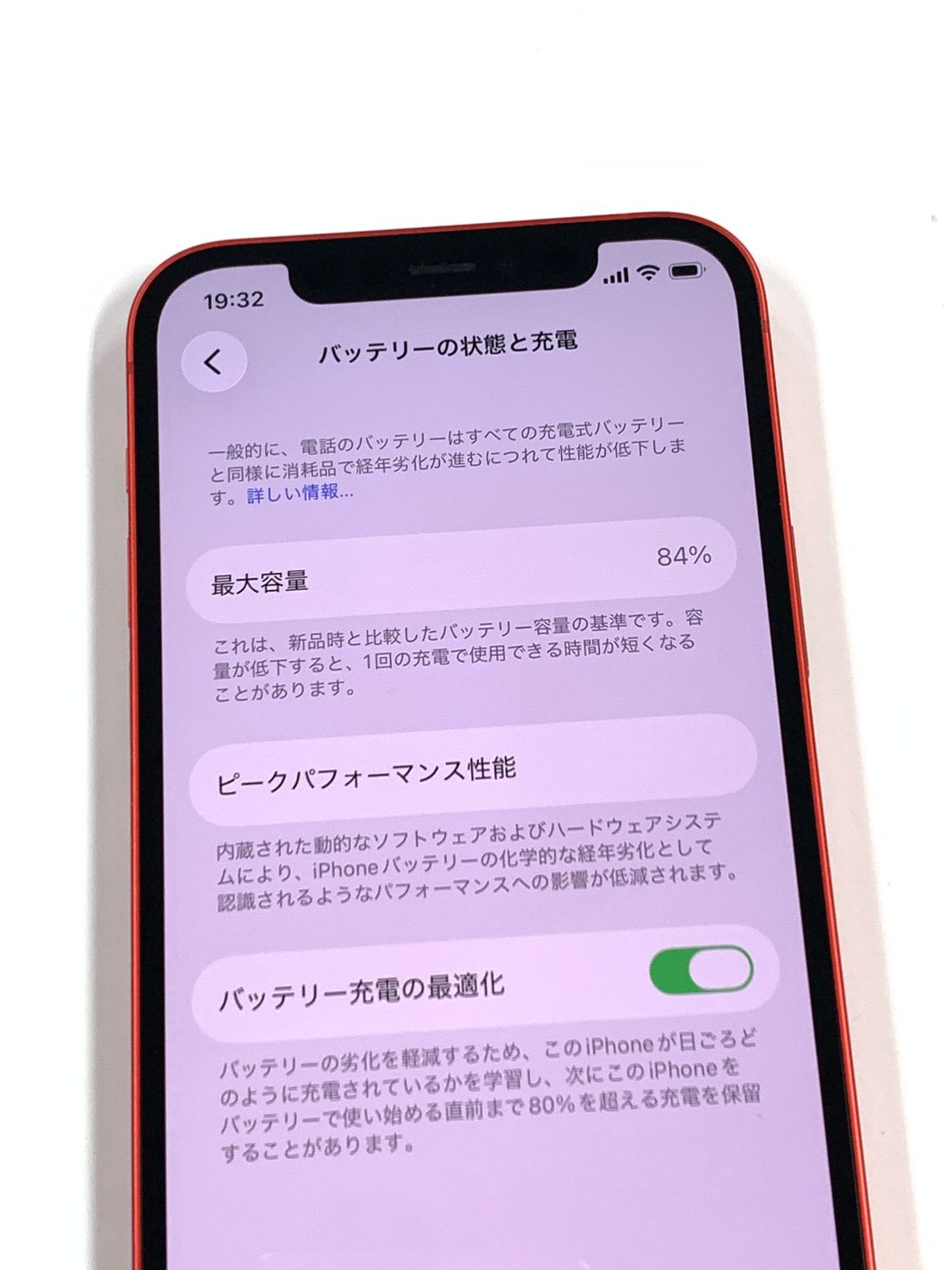 バッテリー最大容量表示:84%