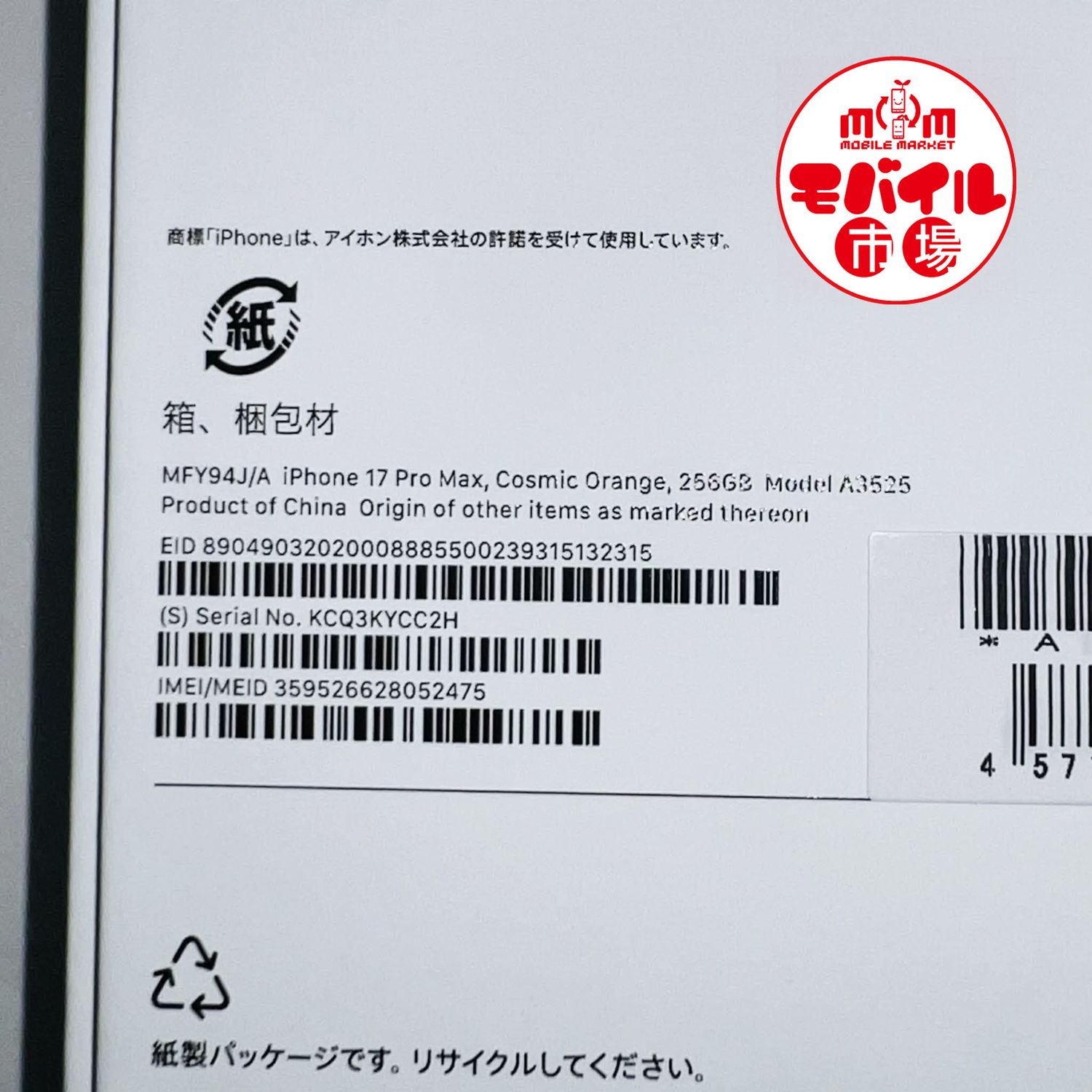 明日発送 モバイル市場☆SIMフリー★新品未使用☆iPhone17 Pro Max 256GB★送料無料