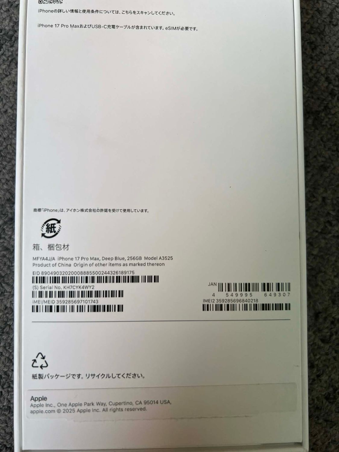 明日発送 新品未使用 Iphone 17 pro max 256GB ディープブルー