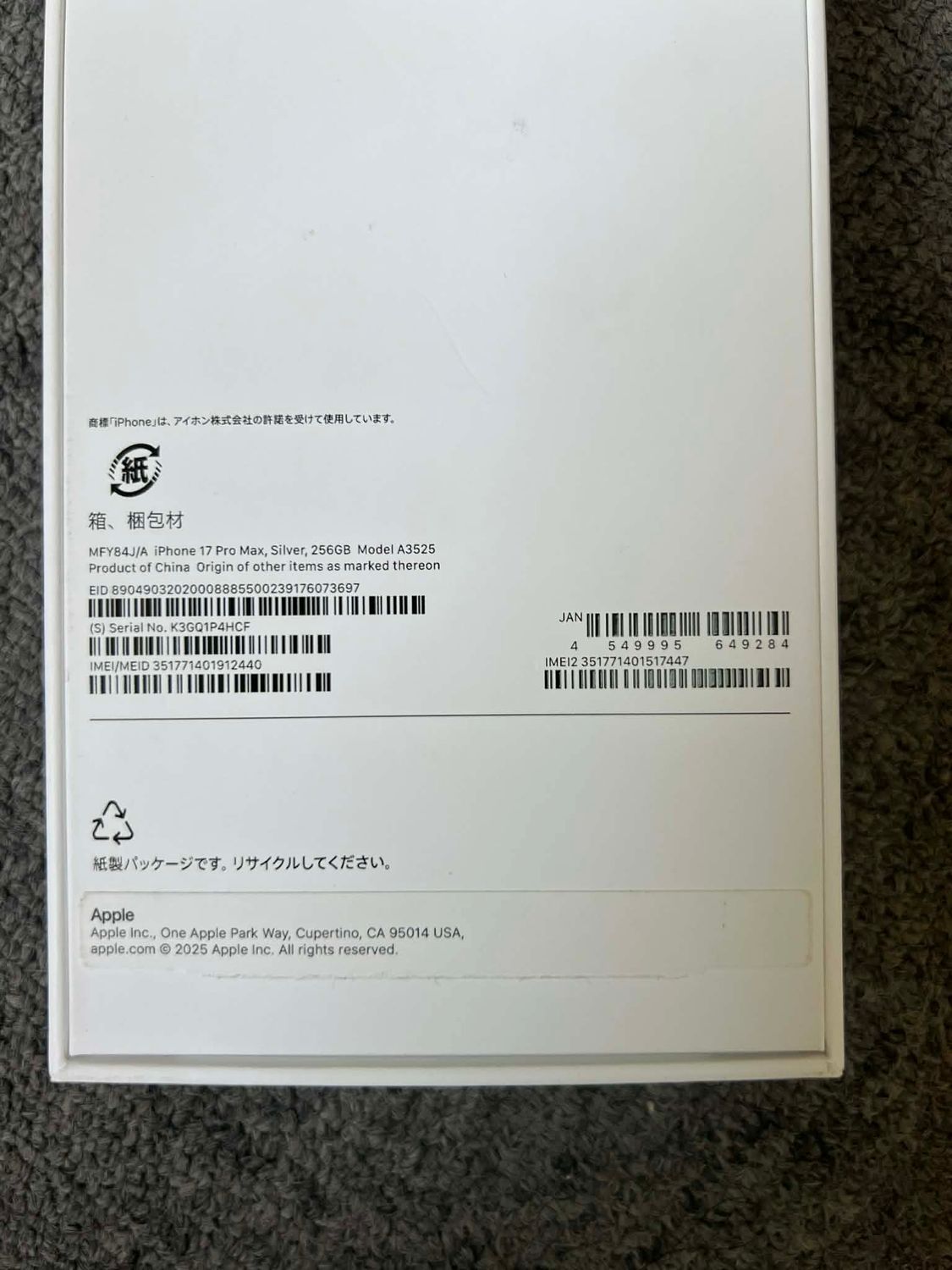 明日発送 新品未使用 Iphone 17 pro max 256GB シルバー