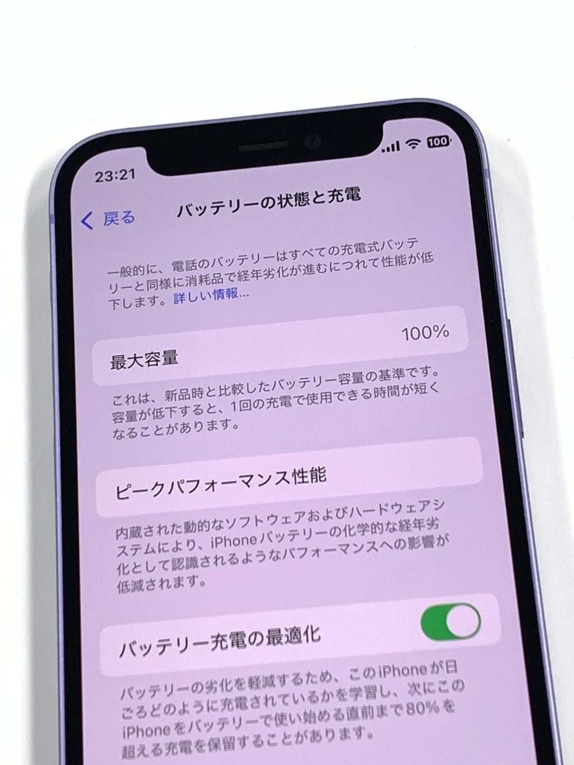 バッテリー最大容量表示:100%(Apple純正部品表示)