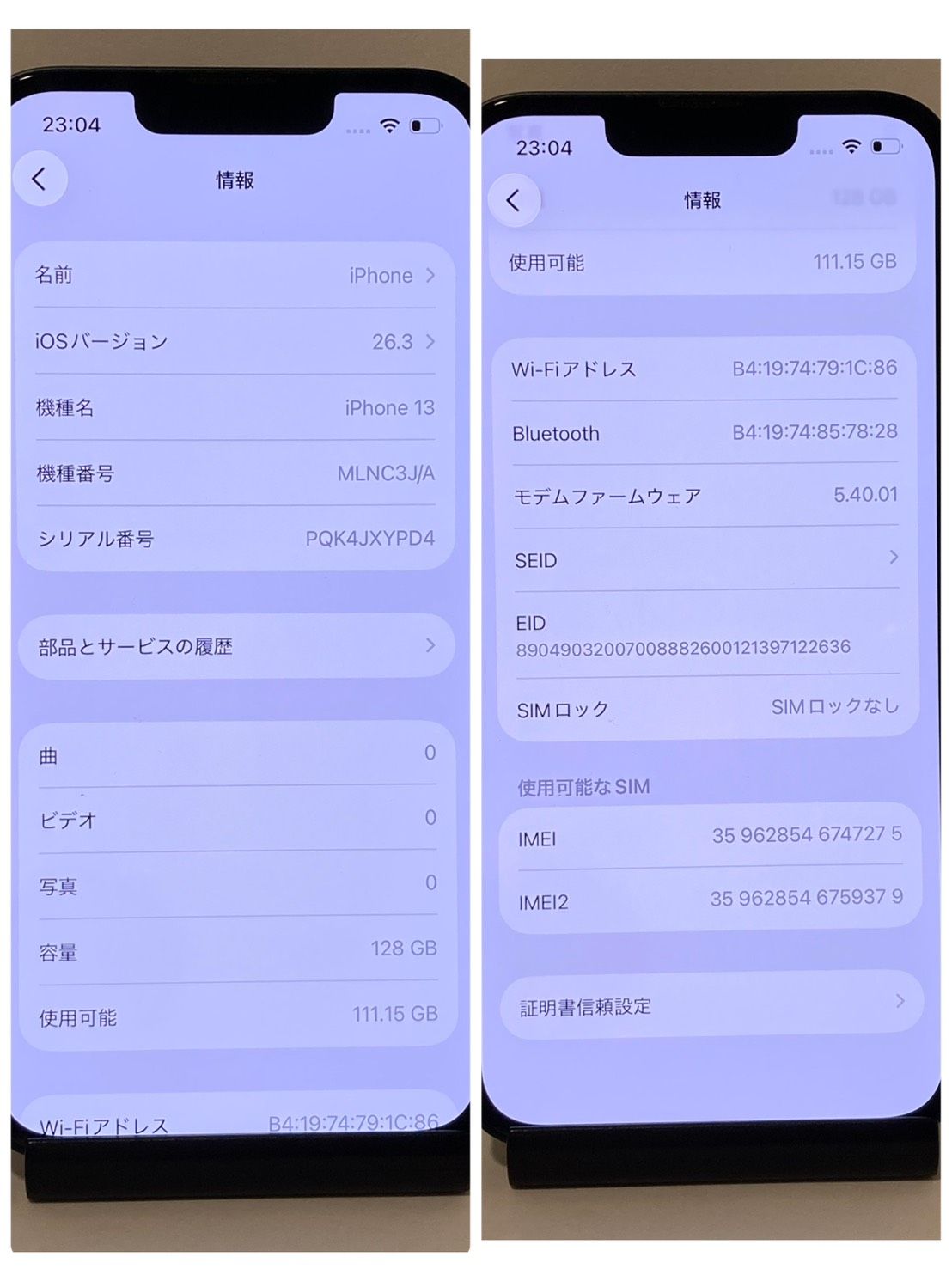 | IMEI番号 | 359628546747275 |