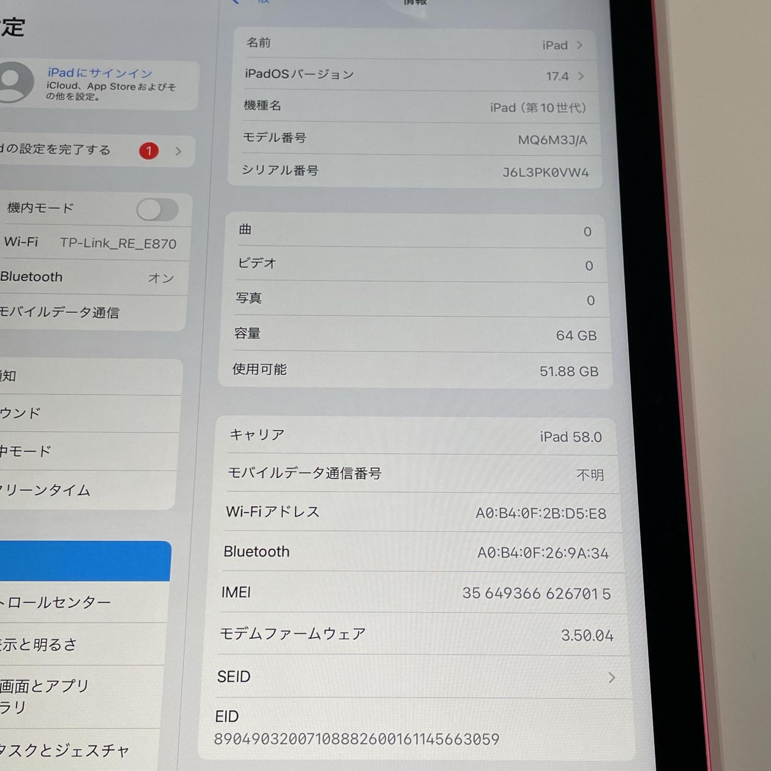 iPad 第10世代 WiFi+Cellular 64GB ピンク