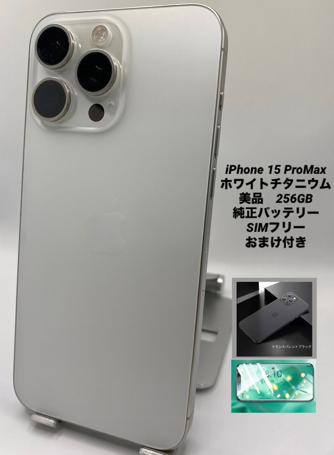 今日発送 006★美品★iPhone 15ProMax 256GBホワイトチタニウム/純正バッテリー87%