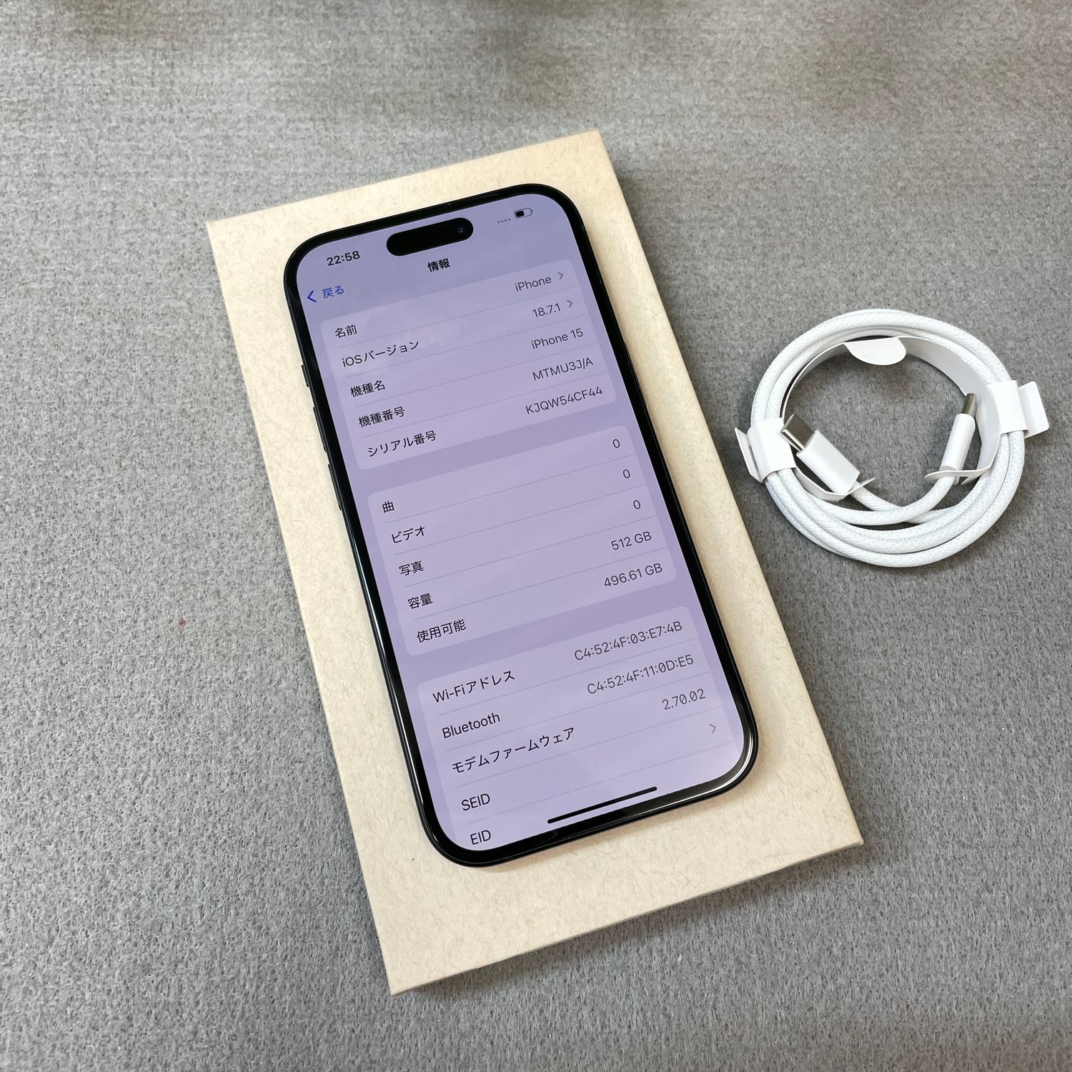 | 機種名 | iPhone15 |
