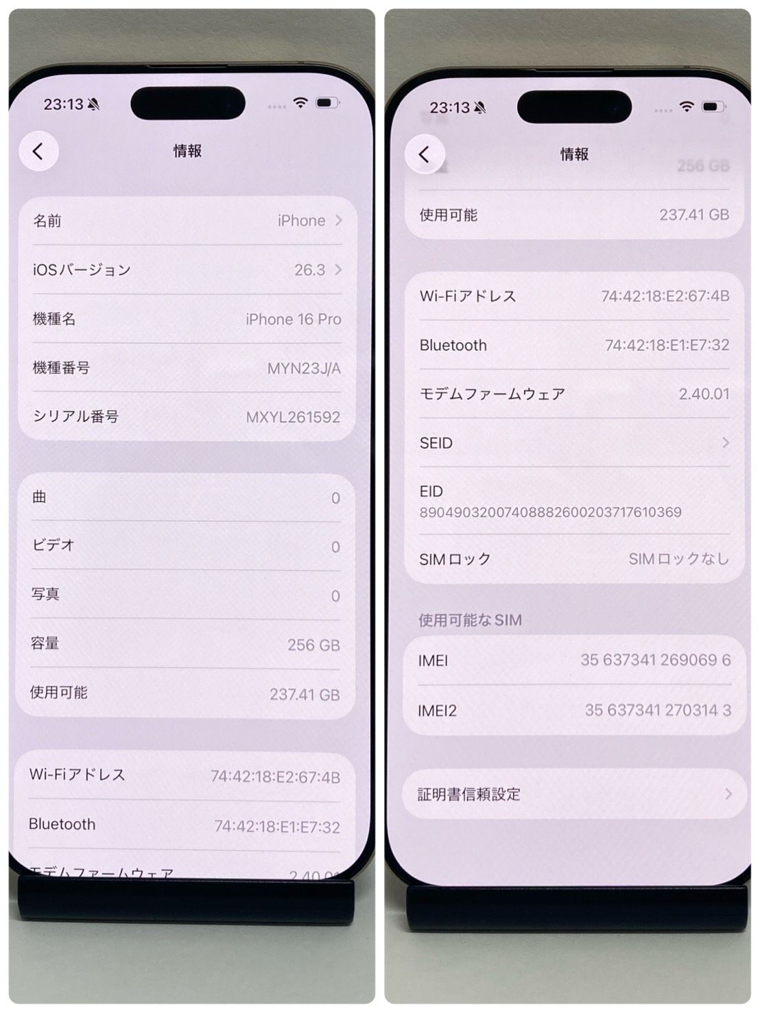 | 機種名 | iPhone16 Pro |
