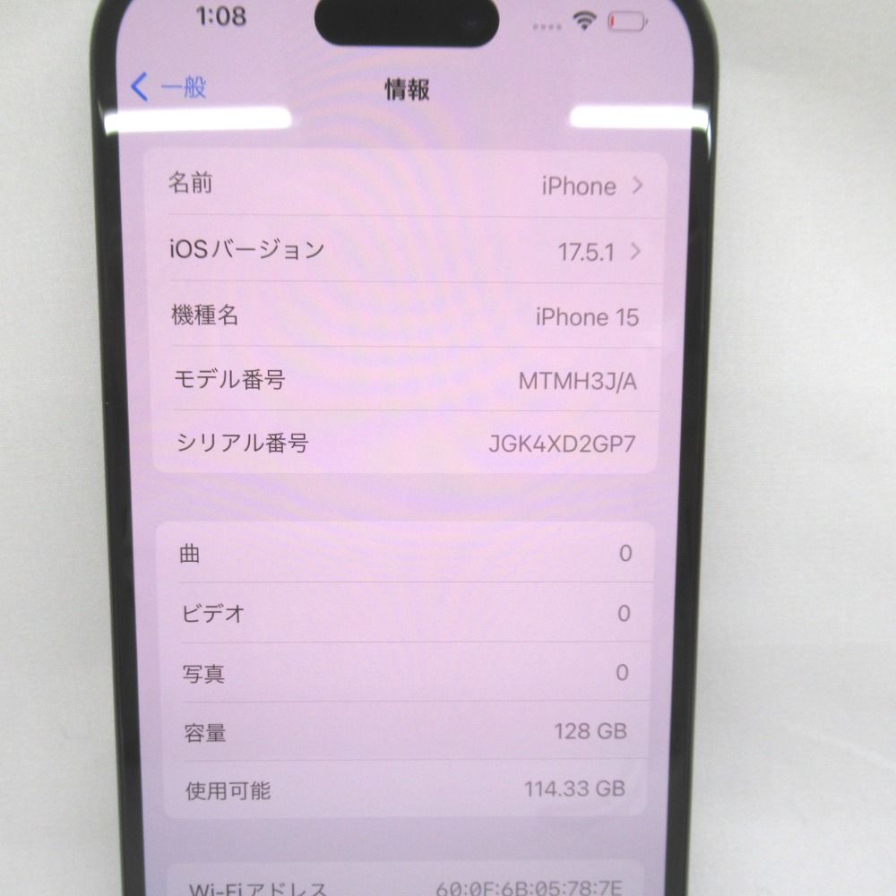 | 機種名 | iPhone15 |