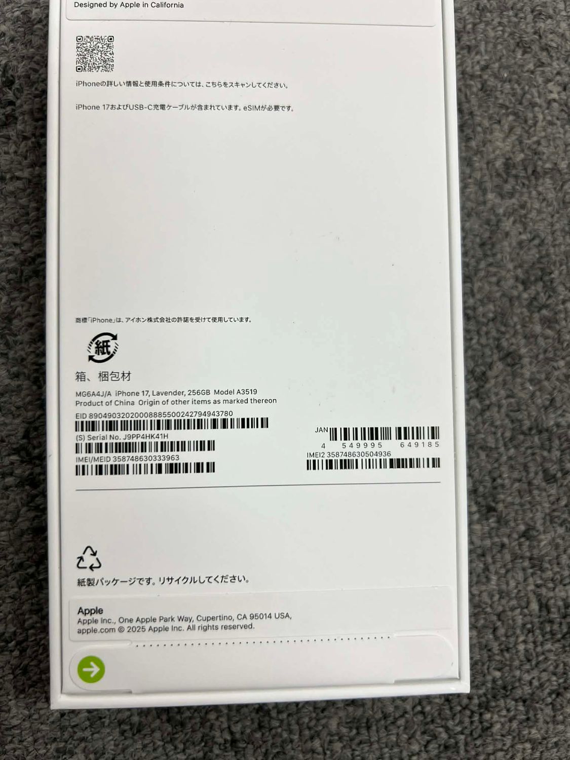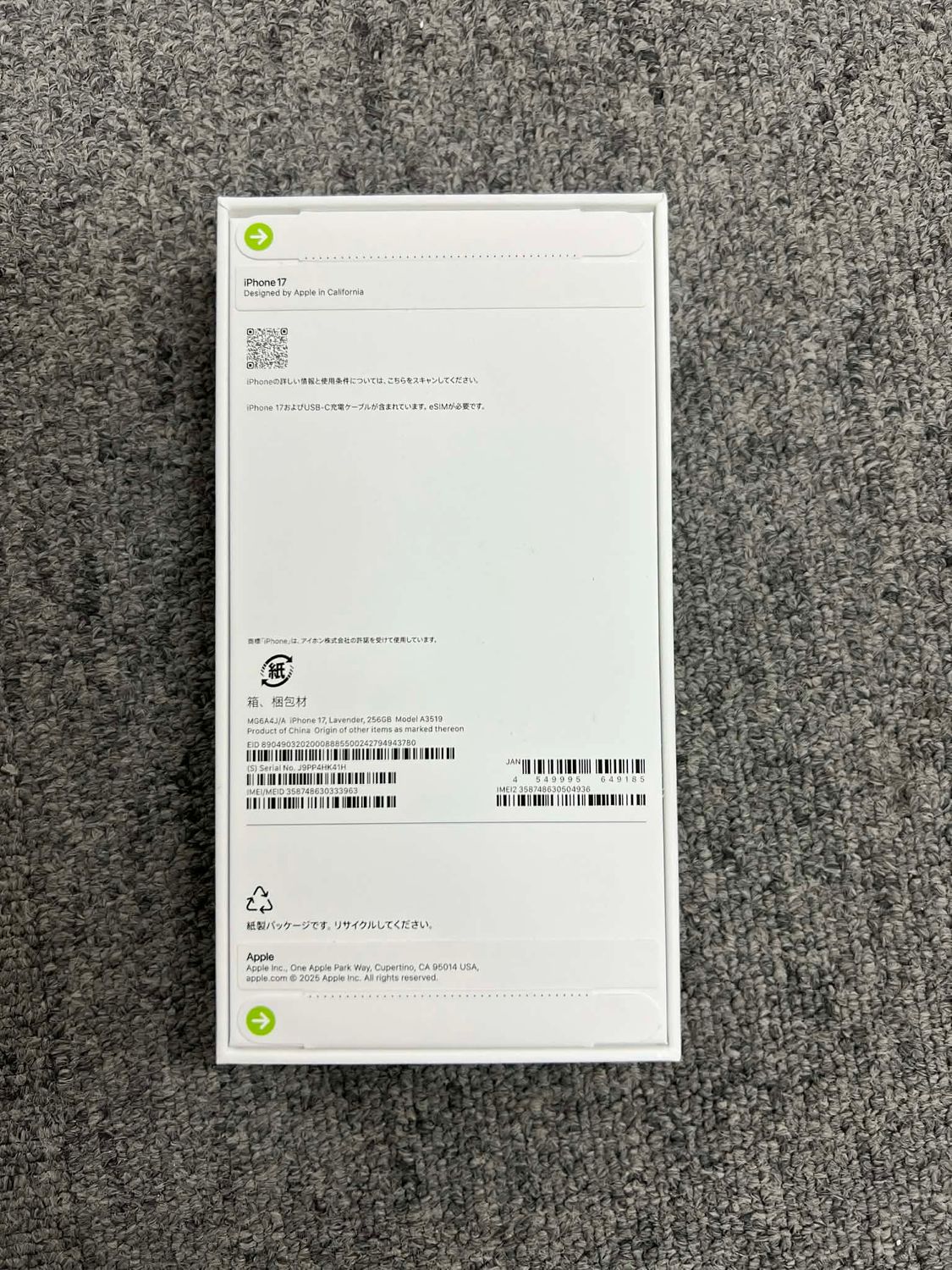 今日発送 新品・未開封 iPhone17 256GB ラベンダー 国内SIMフリー